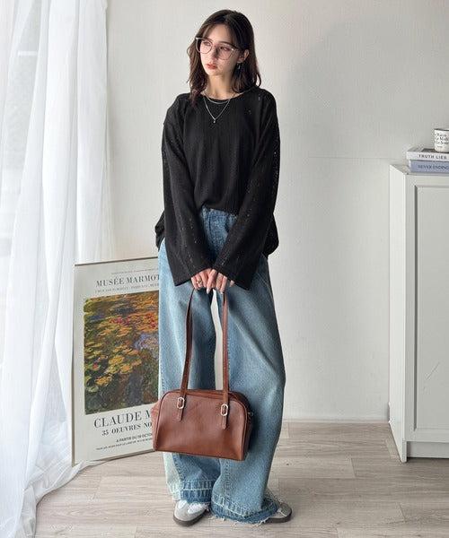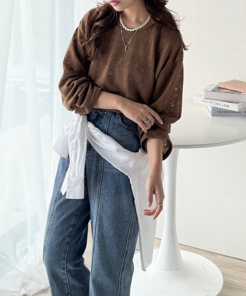 軽やかな編み地が、シンプルながらも奥行きのあるスタイルを演出してくれます。