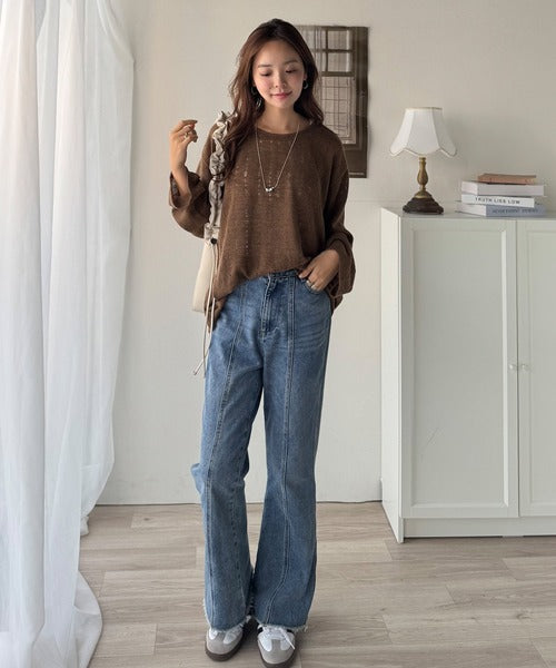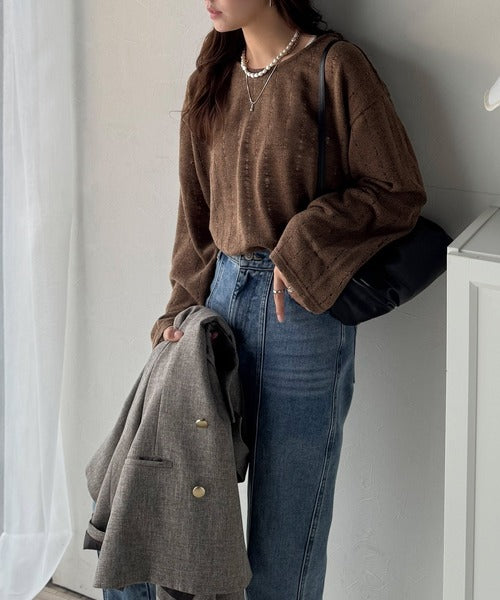ロングシーズン着回せる、上品で抜け感のあるデザインニット。