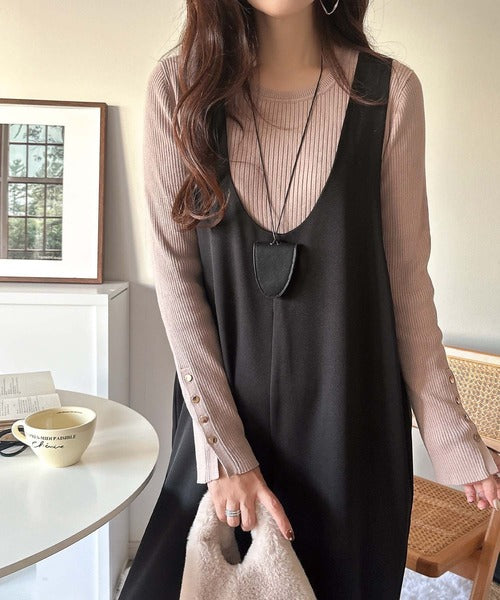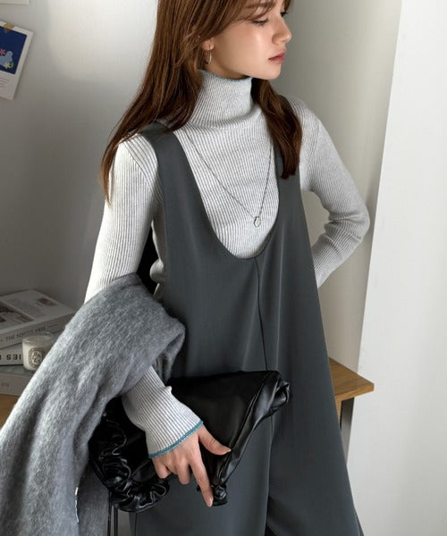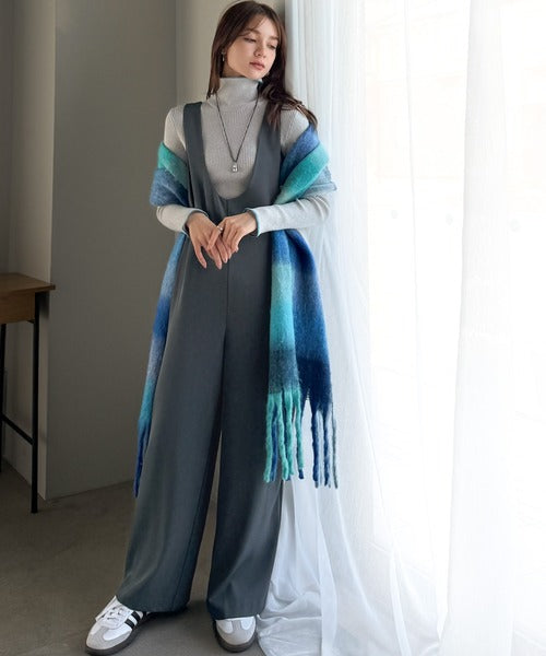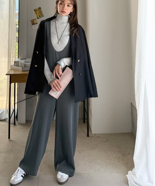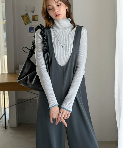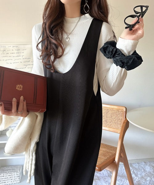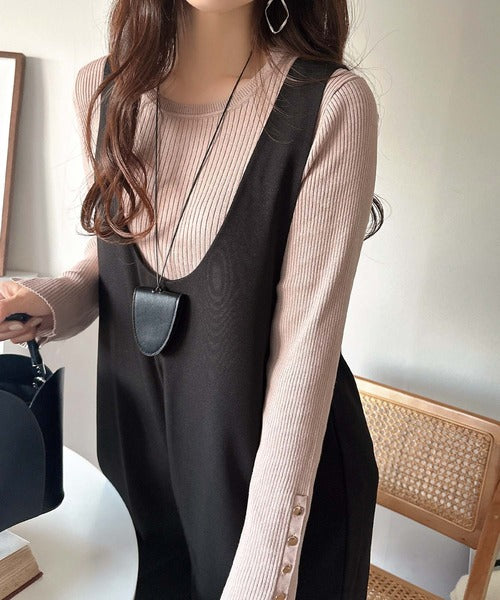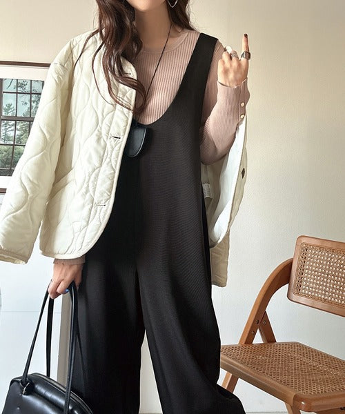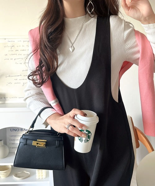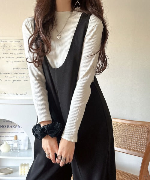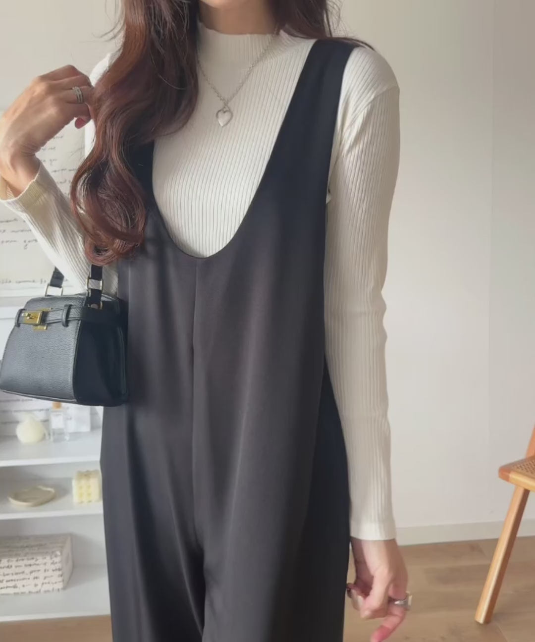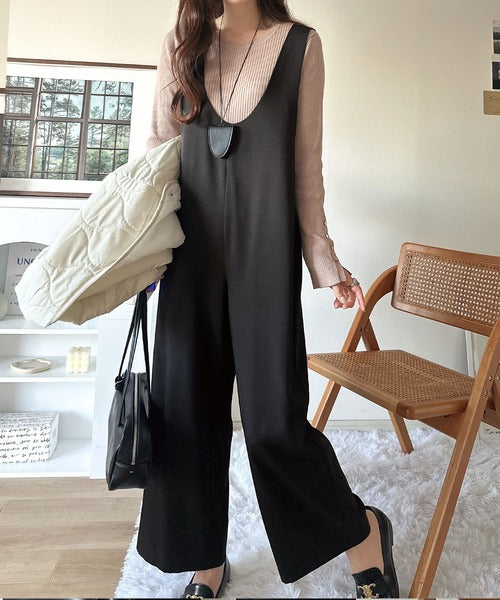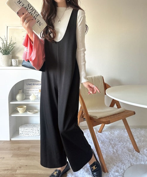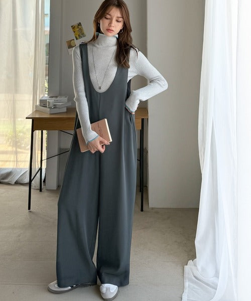着心地ラクチン×お洒落見え♪深Uネックオールインワンサロペットパンツ ce1025005