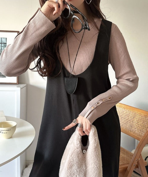 きれいめスタイルを目指すなら、シアートップスやリブニットを中に合わせてみたり