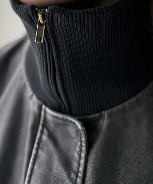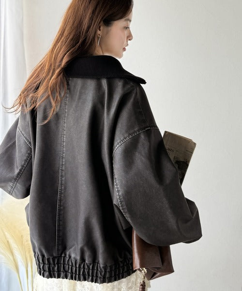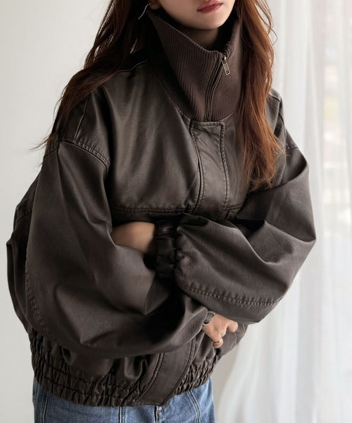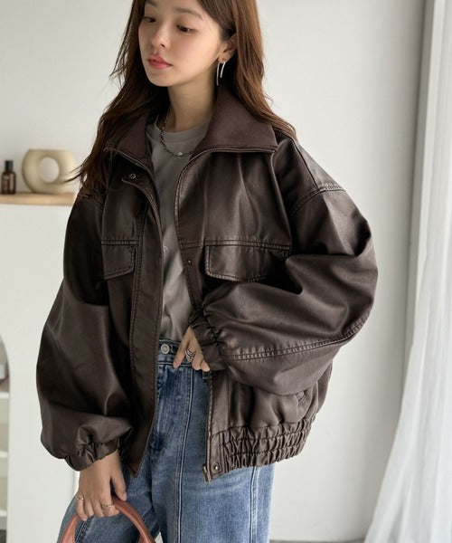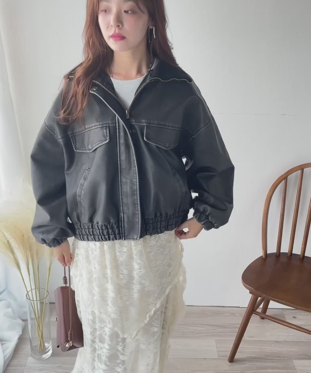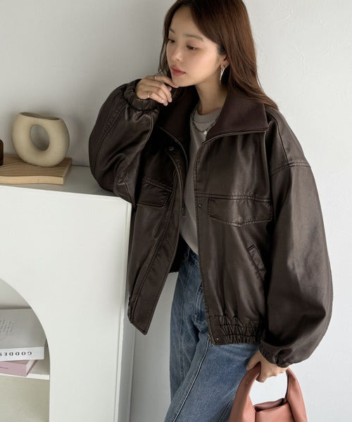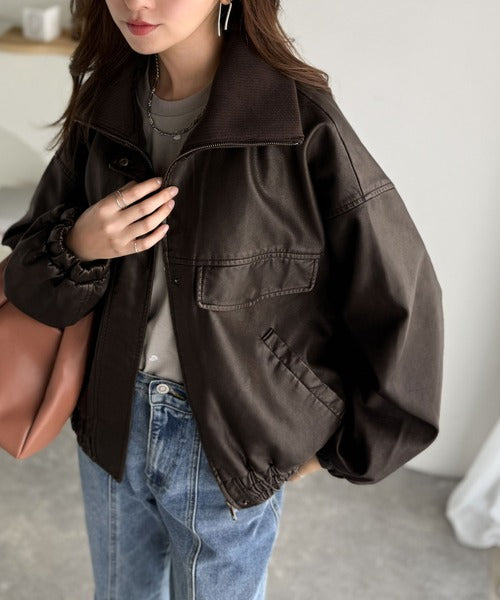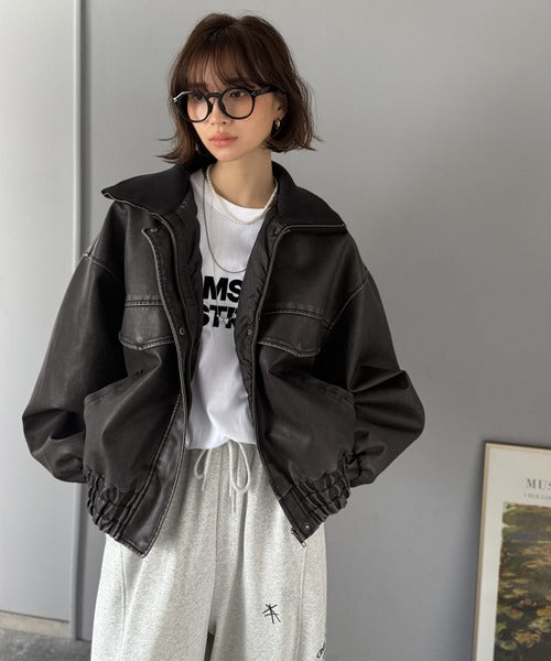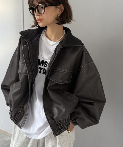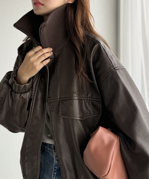 《JaVaジャバコラボ》ゆるっとシルエットで、こなれたムードをプラス。ヴィンテージ加工フェイクレザージャケット jv1070167