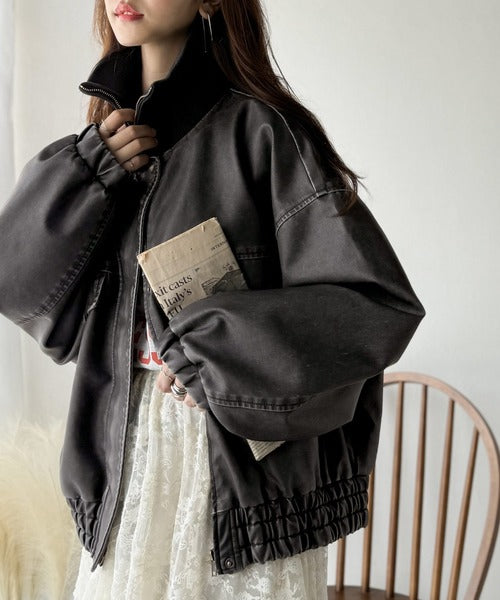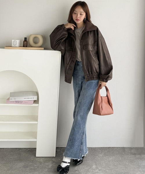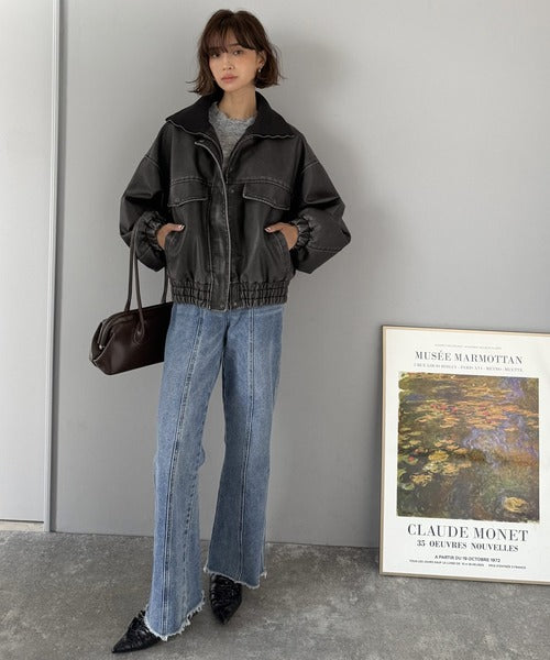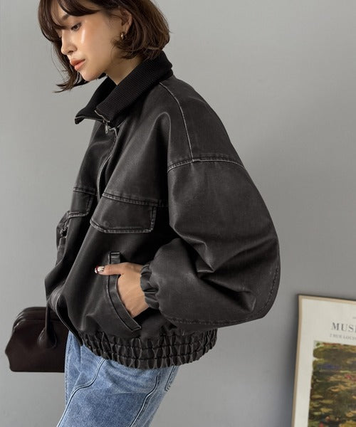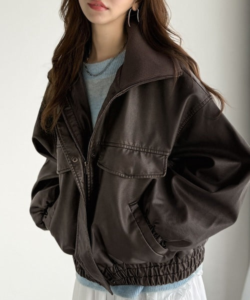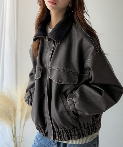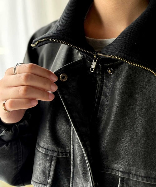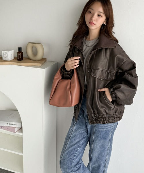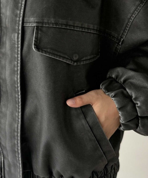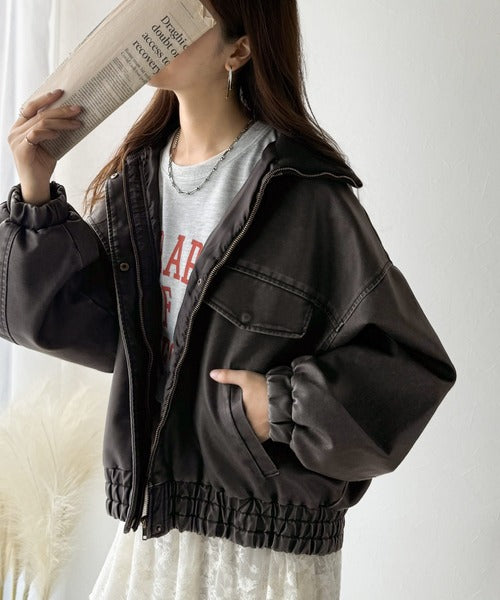 BIGフラップがポイントになったフェイクレザーブルゾン。