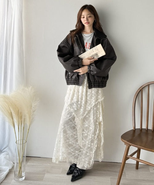 フェミニンやガーリーな印象にしたい時は、レースアイテムやロングスカートを合わせるのがおすすめ♪