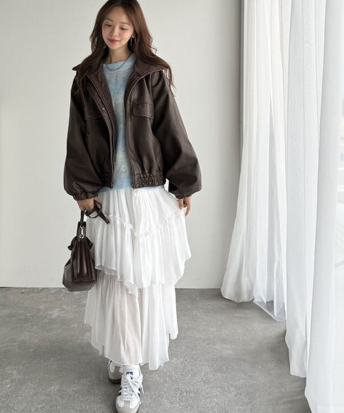 トレンド感を出したい時は、シアートップスにジャケットを羽織ることで、上品さとヌケ感を演出します♪