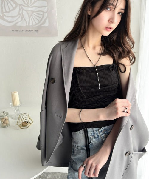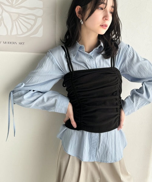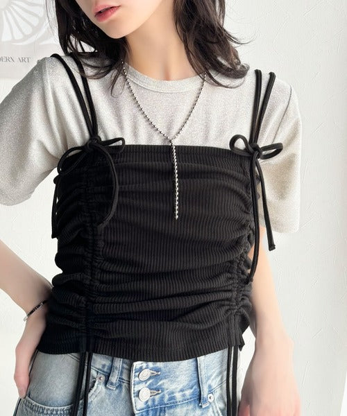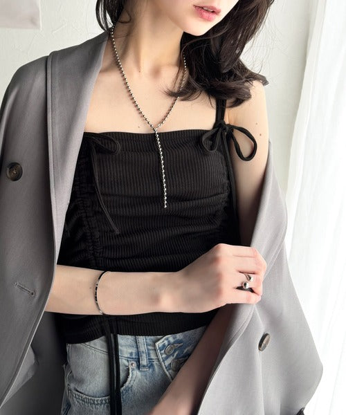 マルチwayで楽しめるリブ素材のドロストビスチェキャミソール。