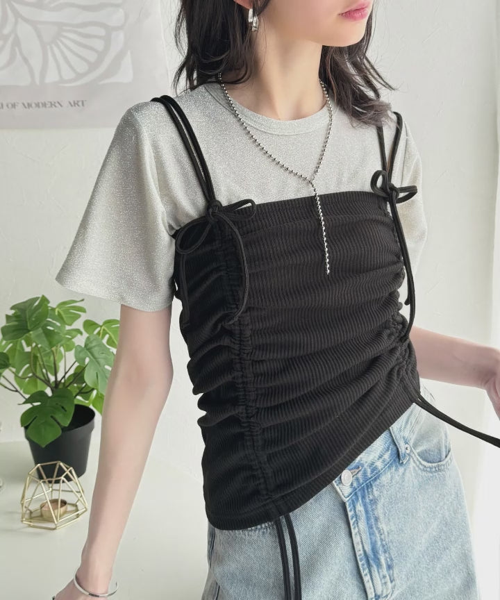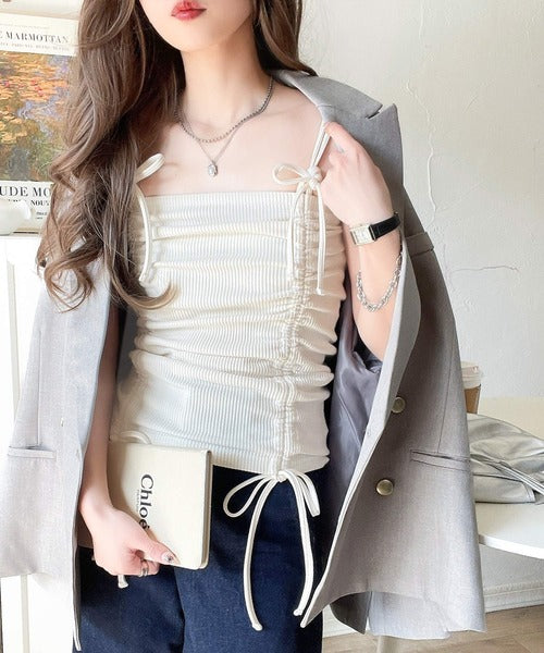 ドロスト付きでシルエット調整可能なキャミソールです。