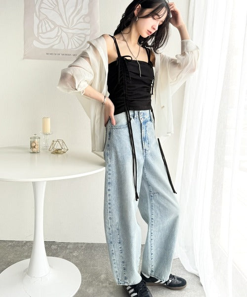 その日の気分に合わせてカーブデニムやフレアパンツを合わせてもOK◎
