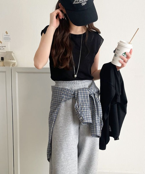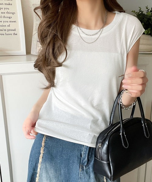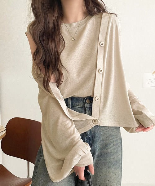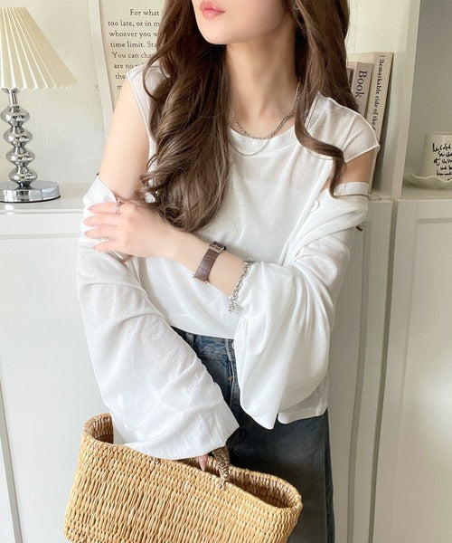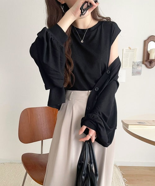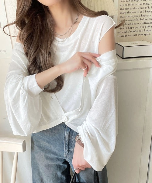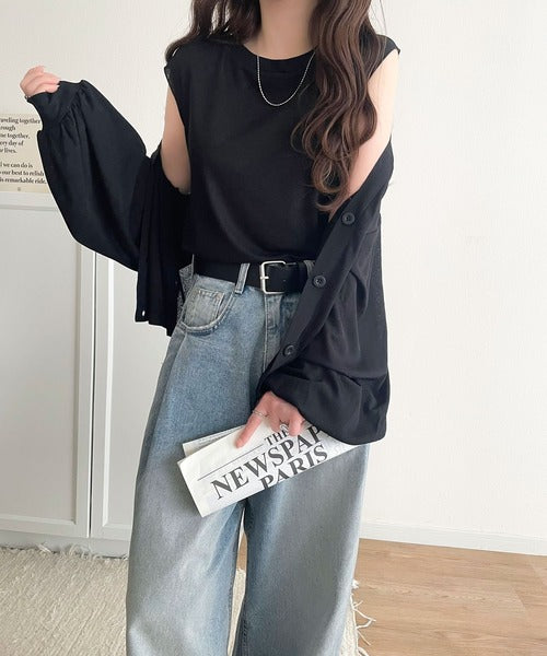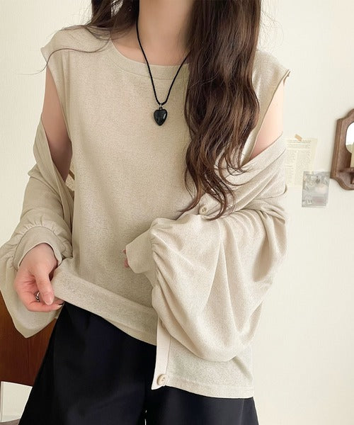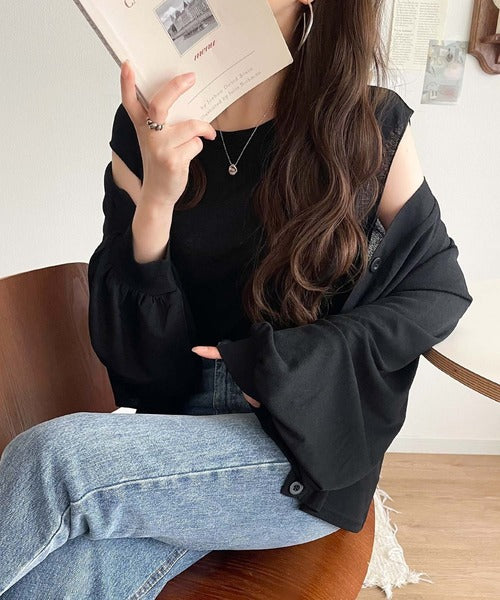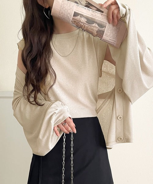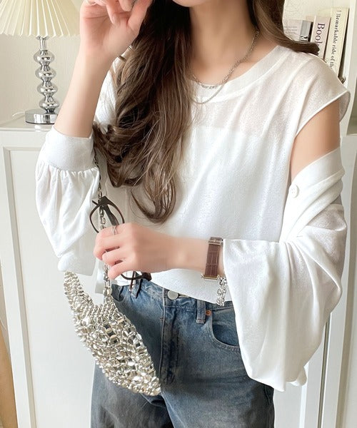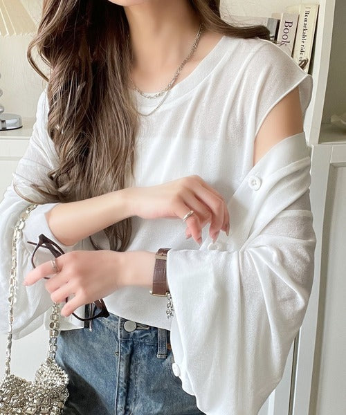 インナーのフレンチスリーブトップスは、単品でも着られるのはもちろん、
