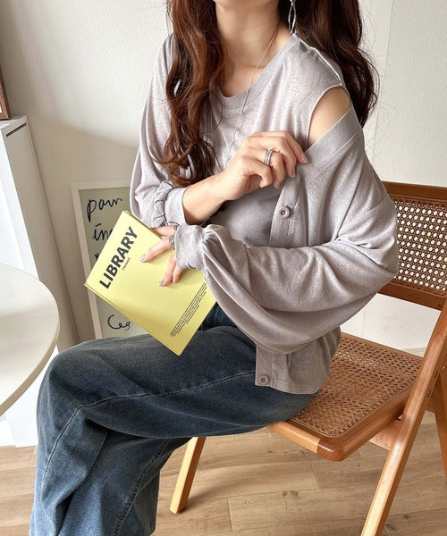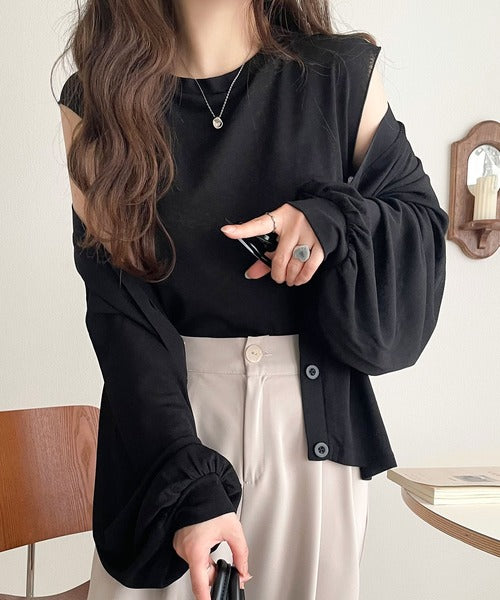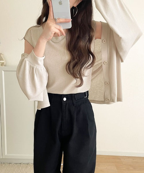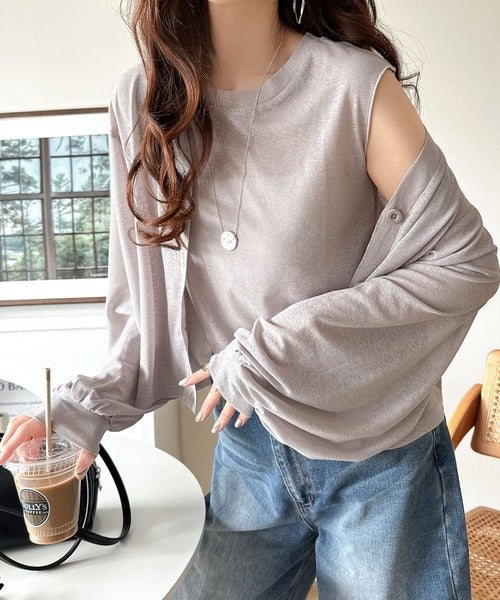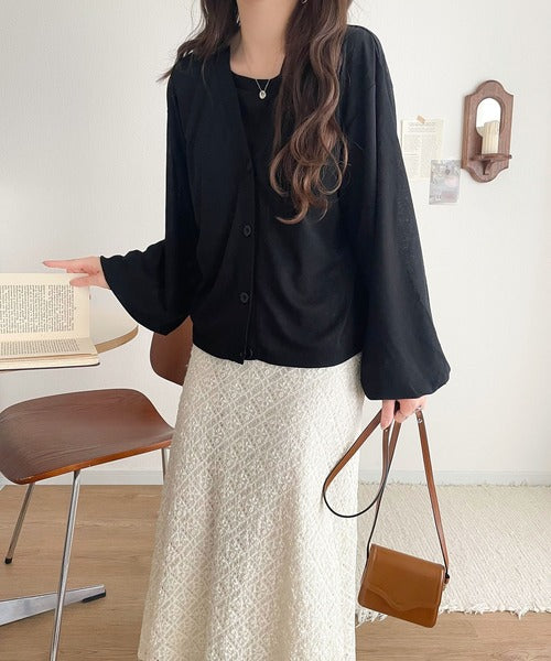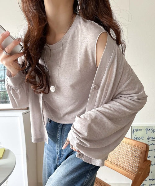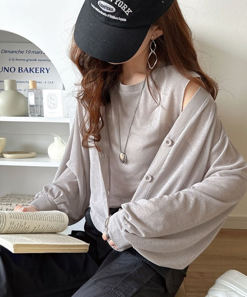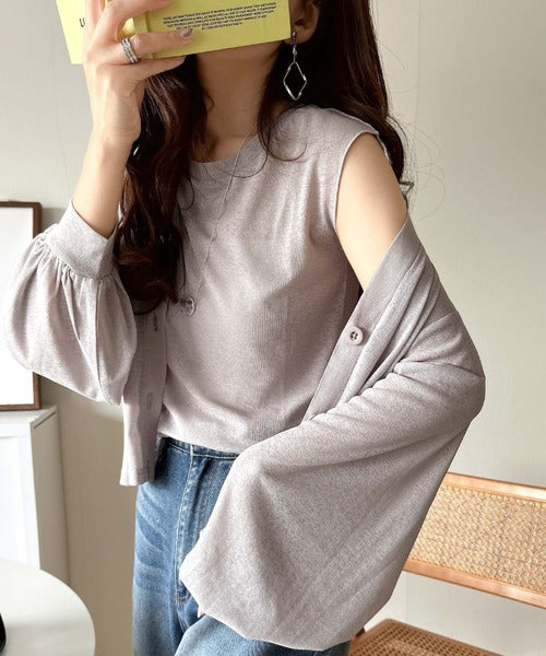 軽やかでお洒落なカーディガン×フレンチスリーブニットセットアイテム