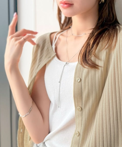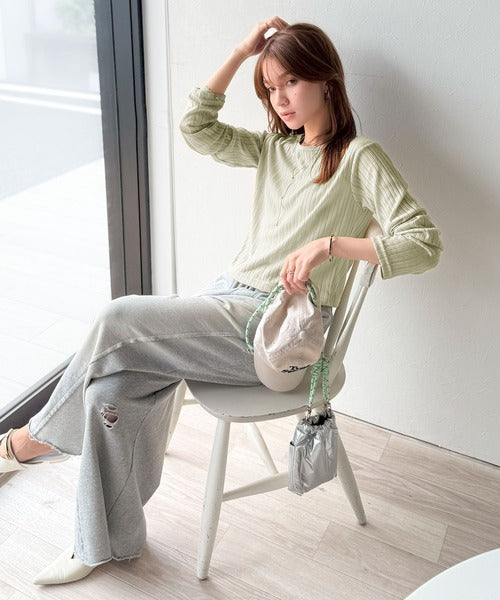 透け感のあるシアーリブ素材が、軽やかで優雅な雰囲気を醸し出します。