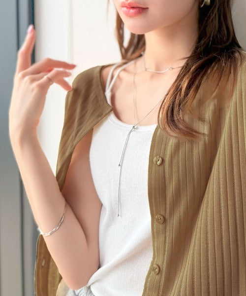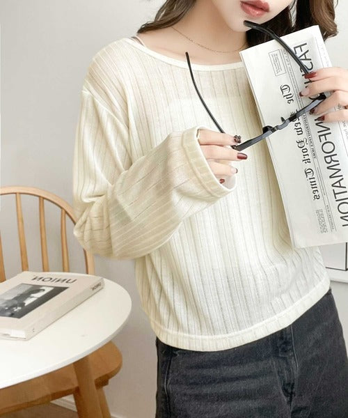 また、シアー素材で軽やかな印象と上品なリブ編みがアクセントに!