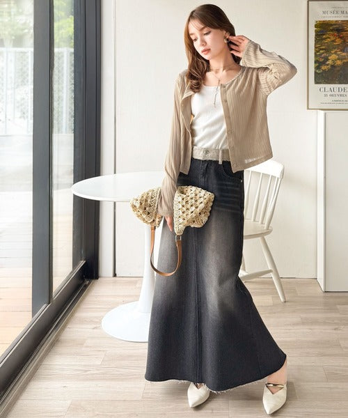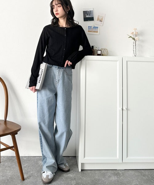 幅広くコーディネートできるこのシアーカーディガンは万能アイテム!