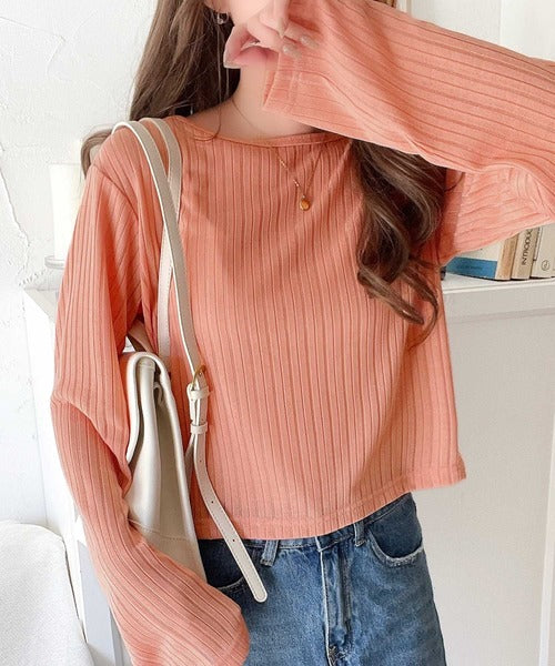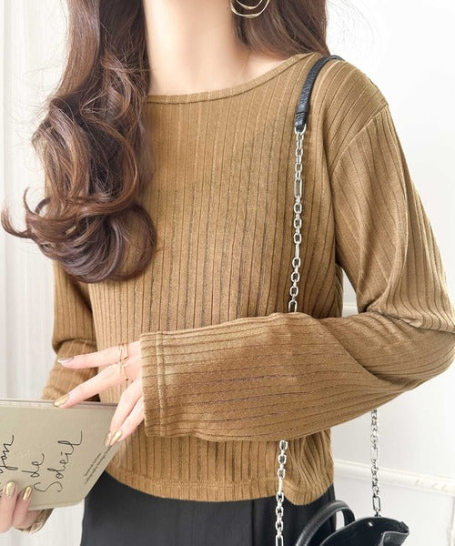 軽くしなやかで透け感があるリブ編みのカットソー素材。