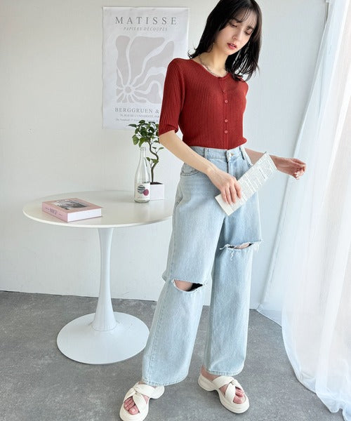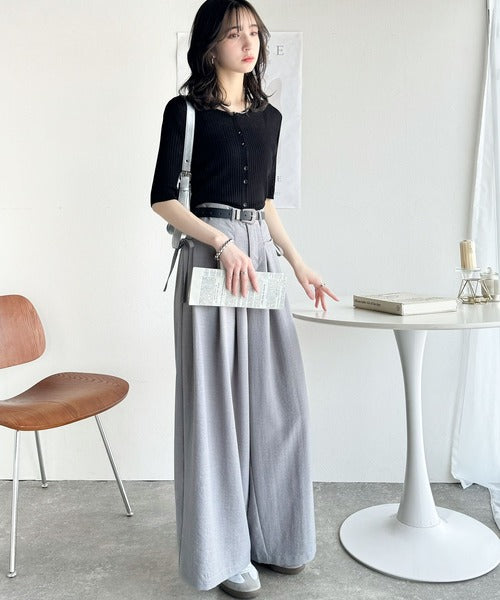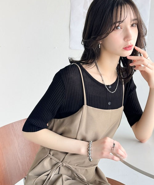大人のこなれ感。シアーリブニット半袖カーディガン ce1260416