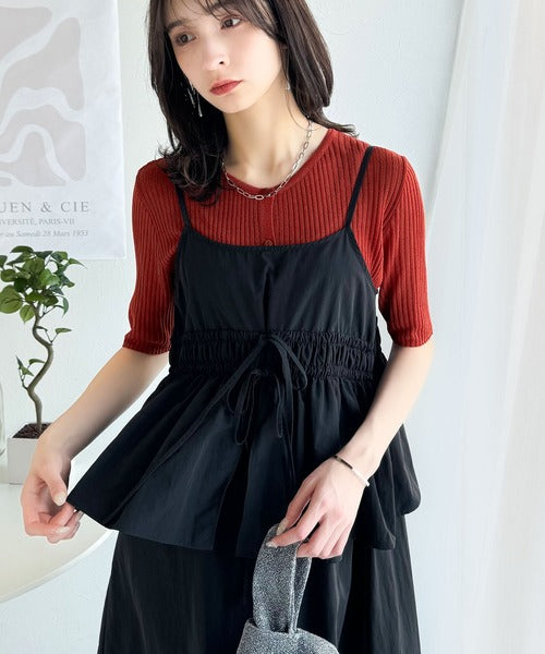 カーデの上からビスチェを合わせても可愛いスタイリングに!