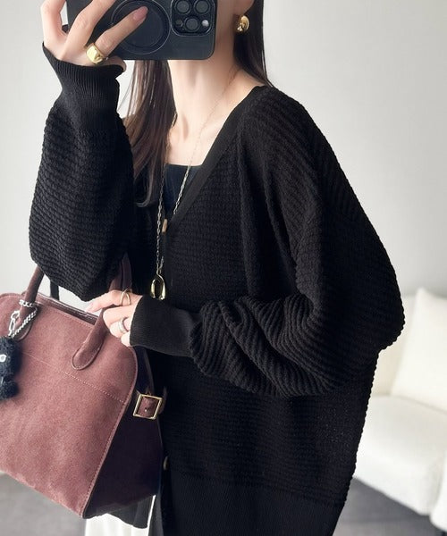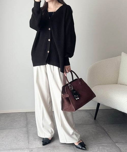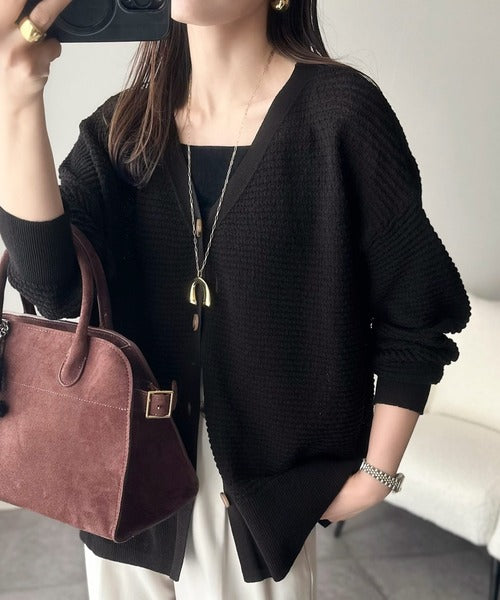表面に変化のあるブークレ編みを贅沢に使用したニットカーディガン。