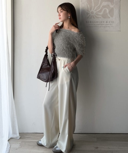 【mily bilet】ふんわり大人可愛い。ラメシャギーブローチ付きワンオフショル前後2WAYカーディガン mi1259012