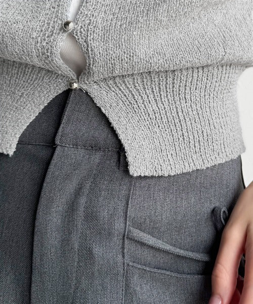 コンパクトな丈感は、ハイウエストのボトムスとの相性も抜群です。