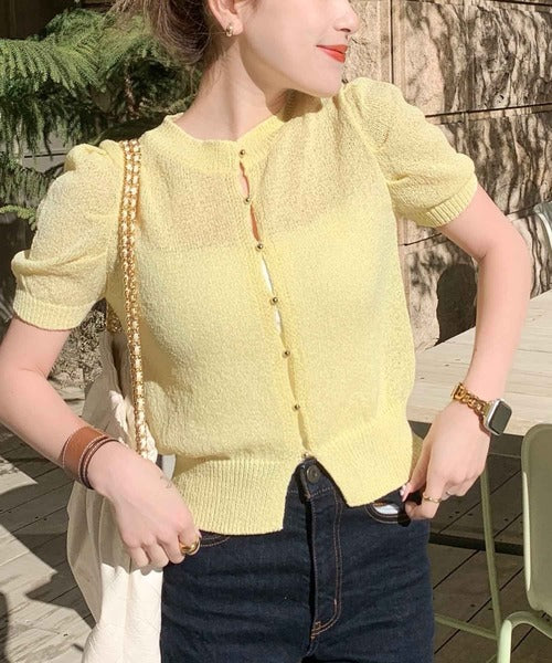 【mily bilet】着回し力無限大。パフスリーブ2WAYサマーニットカーディガン mi1259015
