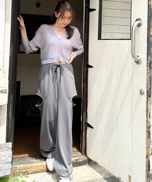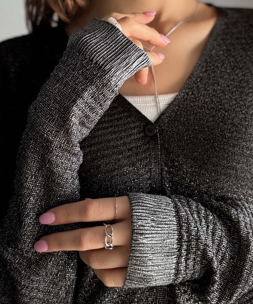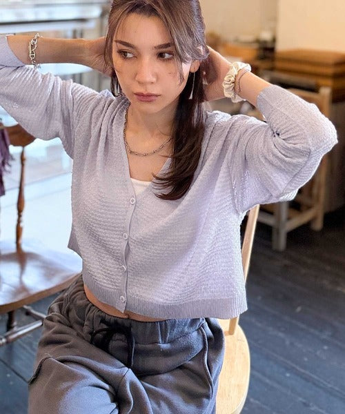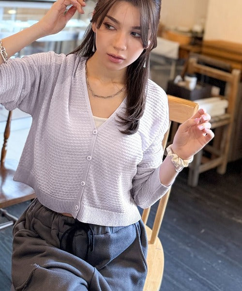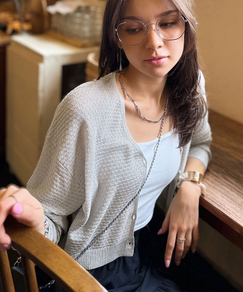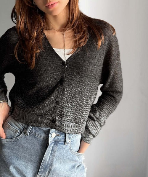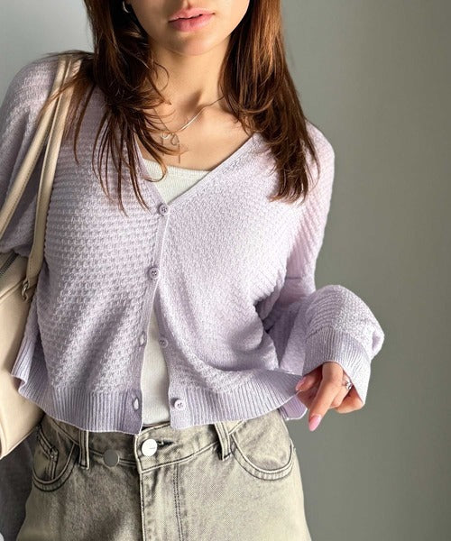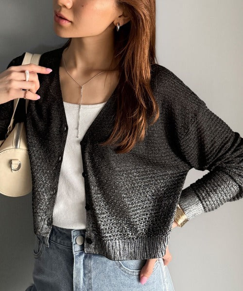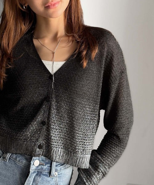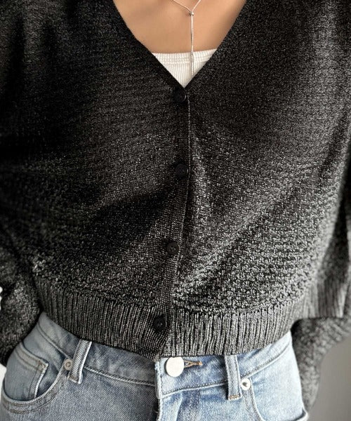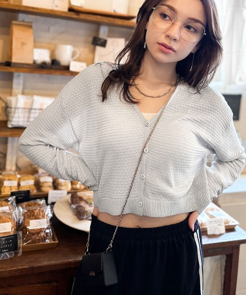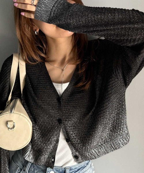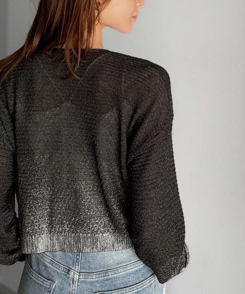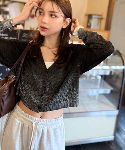 【mily bilet】抜け感とキラ感、どっちも欲張るのが正解◎箔プリントメッシュショート丈Vネックカーディガン(長袖) mi1259016