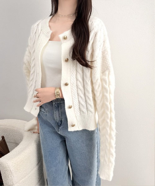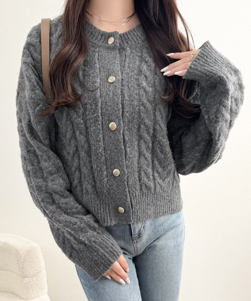 立体感のあるケーブル編みで仕上げたカーディガン!