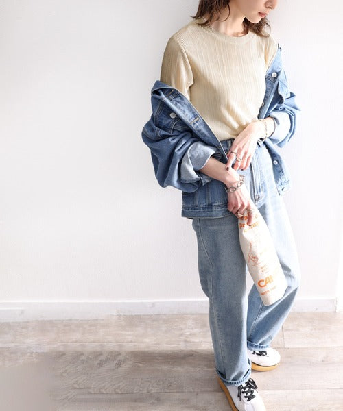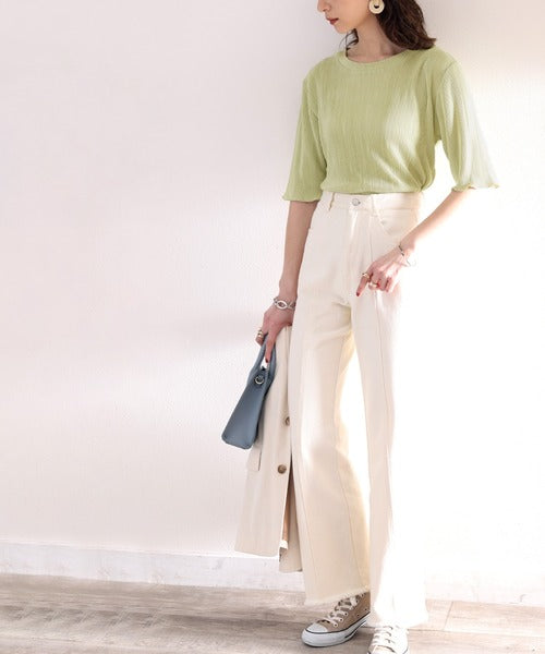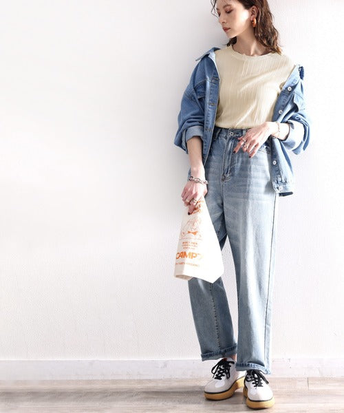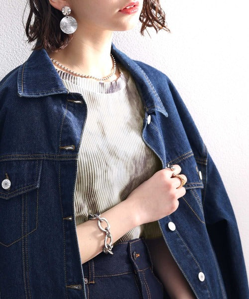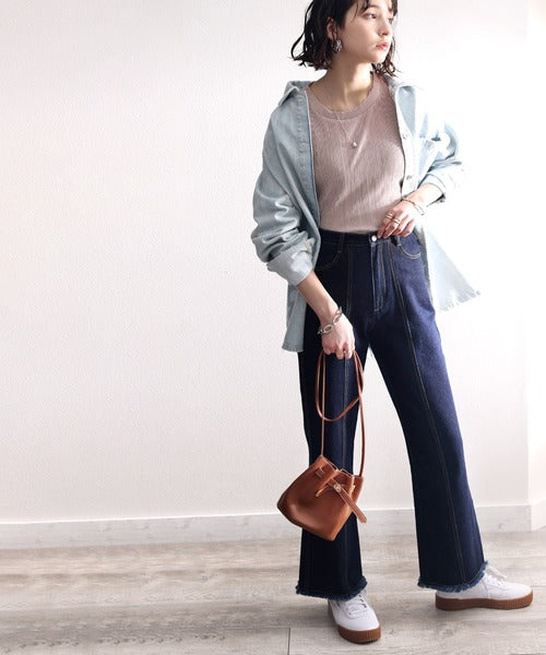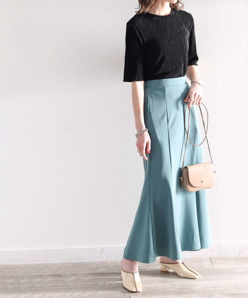 デニムやトレンドのマーメイドスカート、どんなボトムスとも相性抜群。
