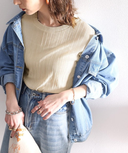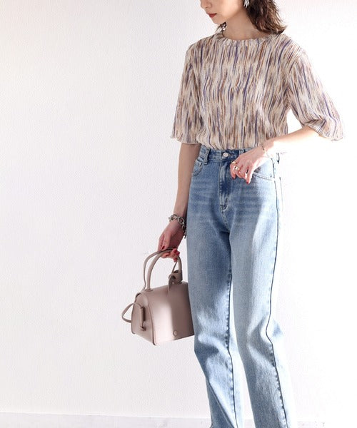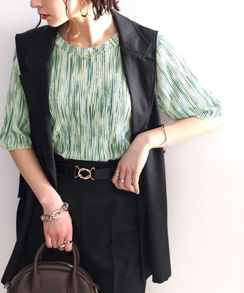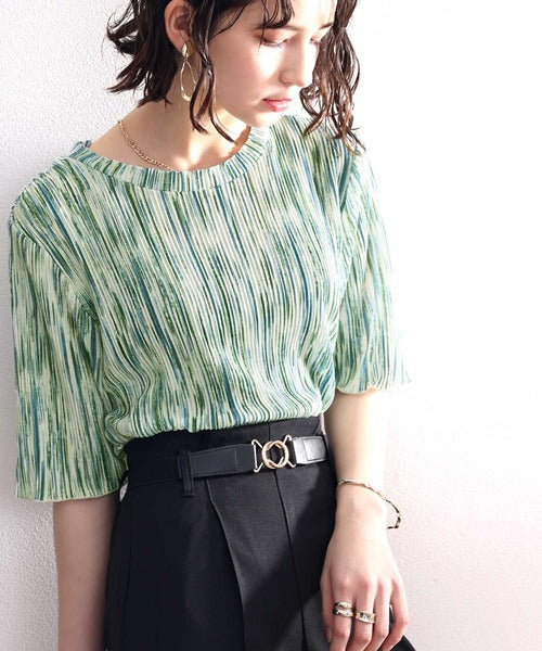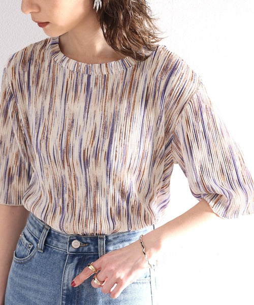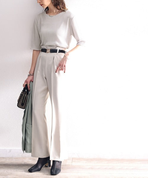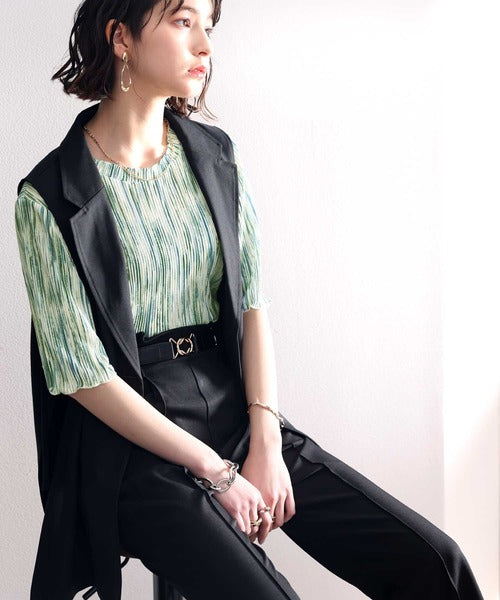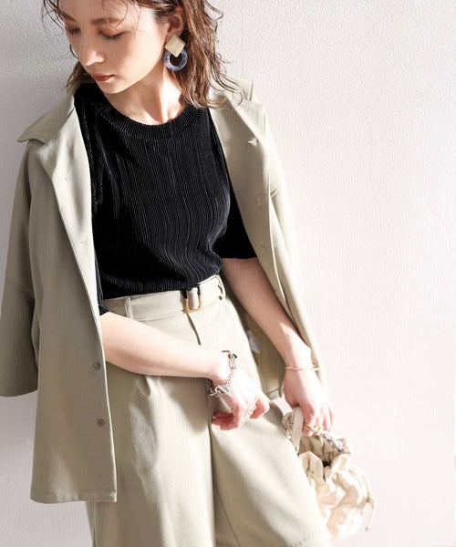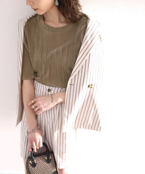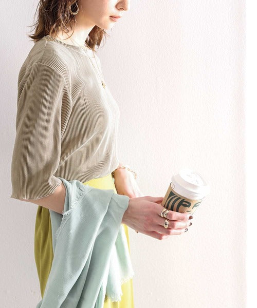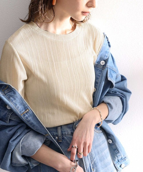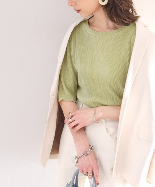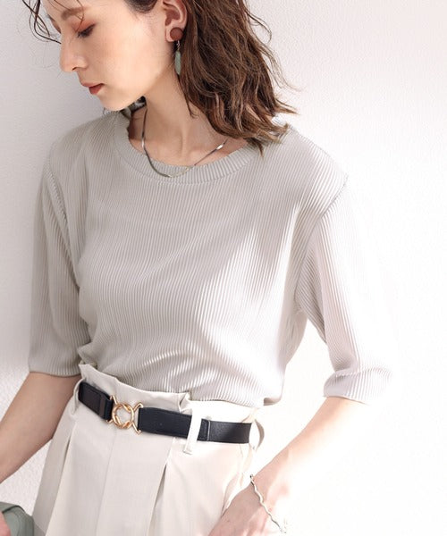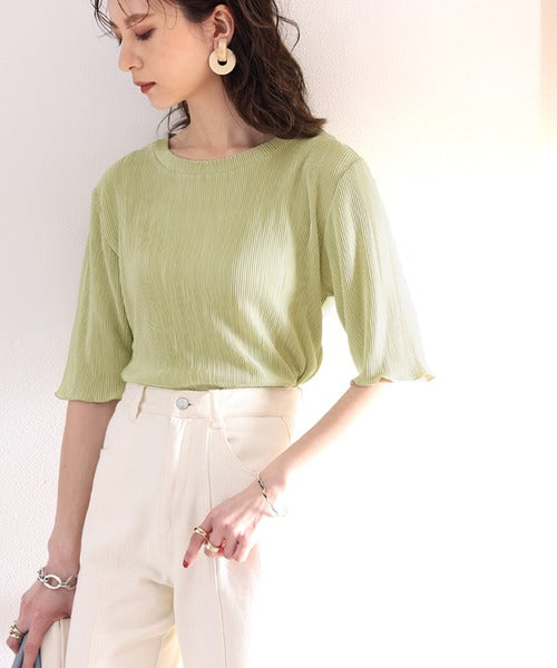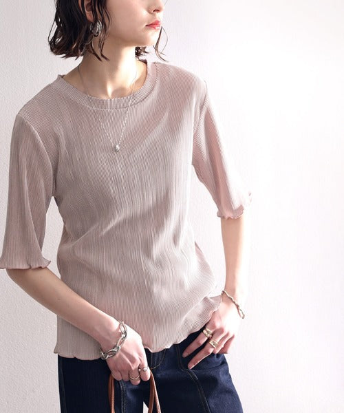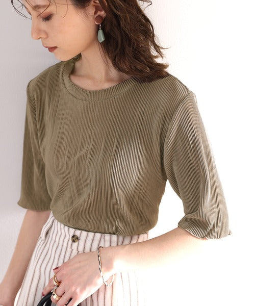 プリーツLOVER。メロープリーツ5分袖トップス ce0420067