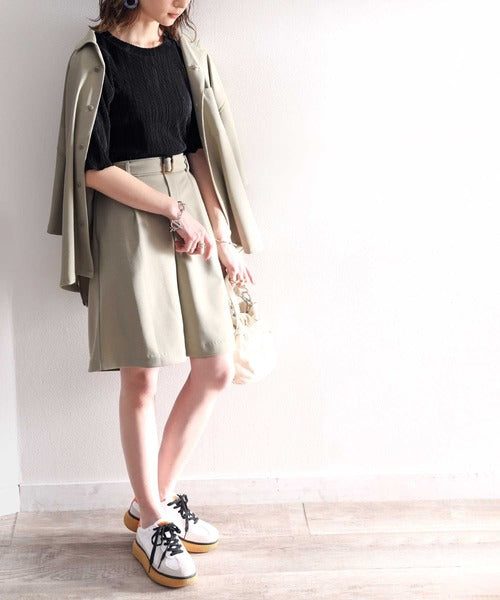 艶感のあるプリーツは上品ながらもカジュアルにもぴったり。