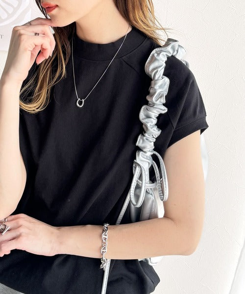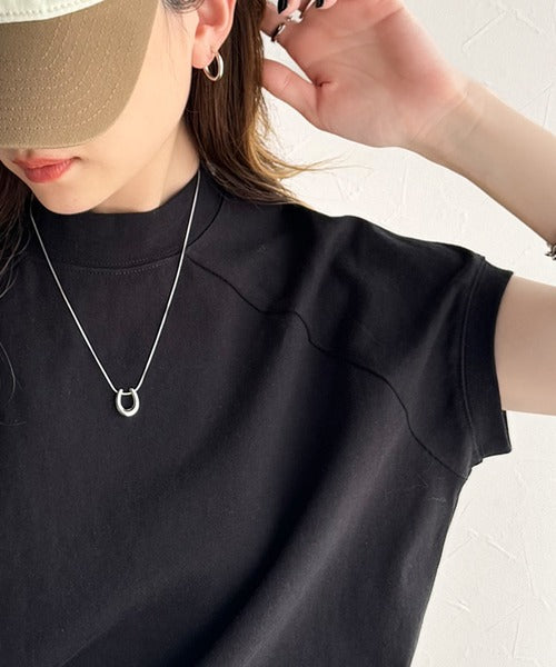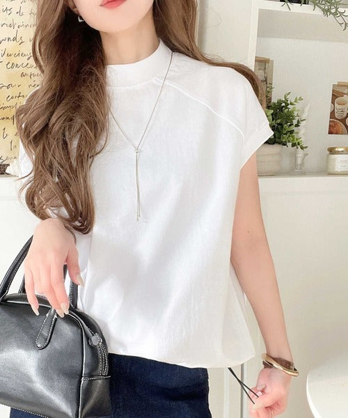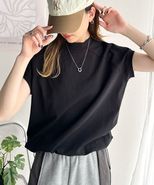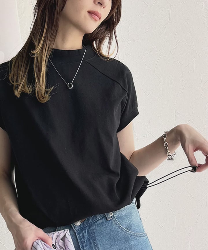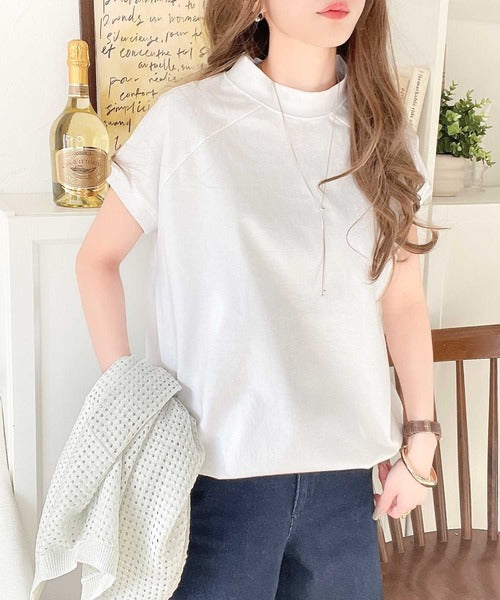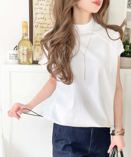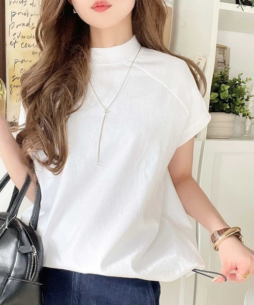 綿100%USAコットン。大人のモックネックフレンチラグラン裾ドロストシンプルTシャツ ce0780080