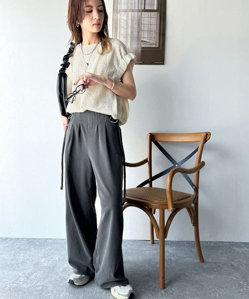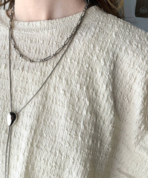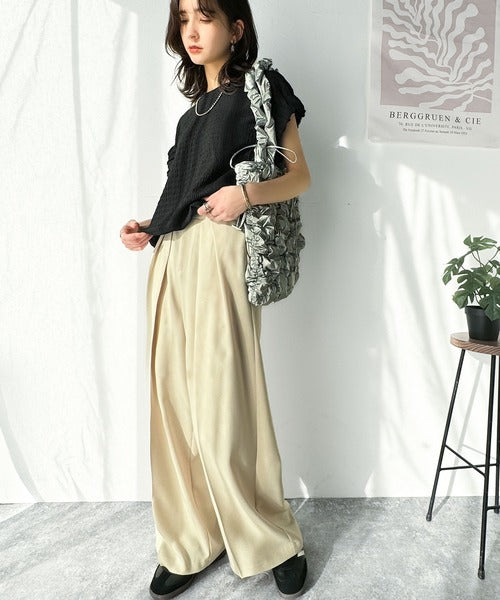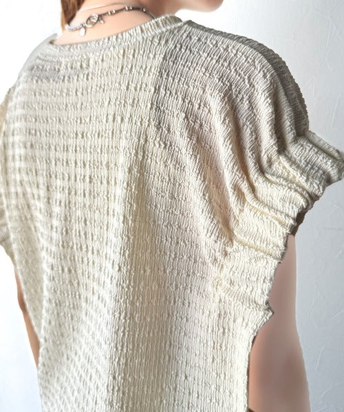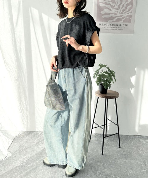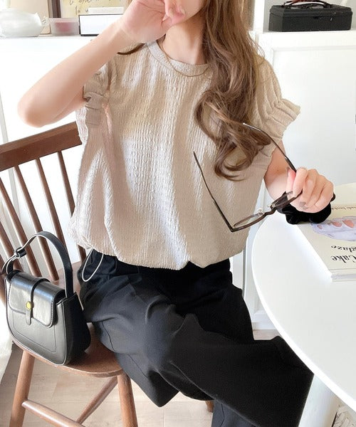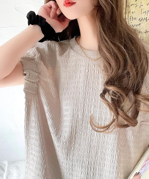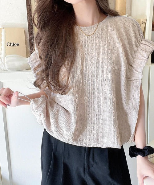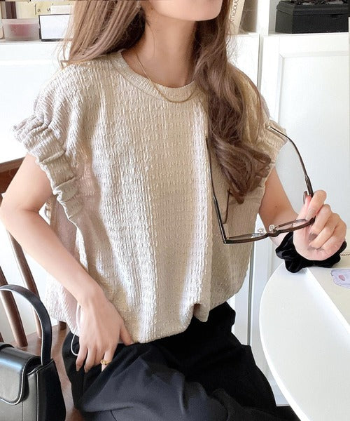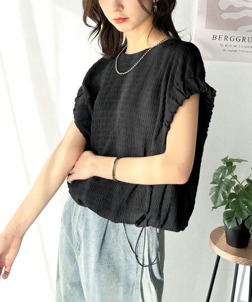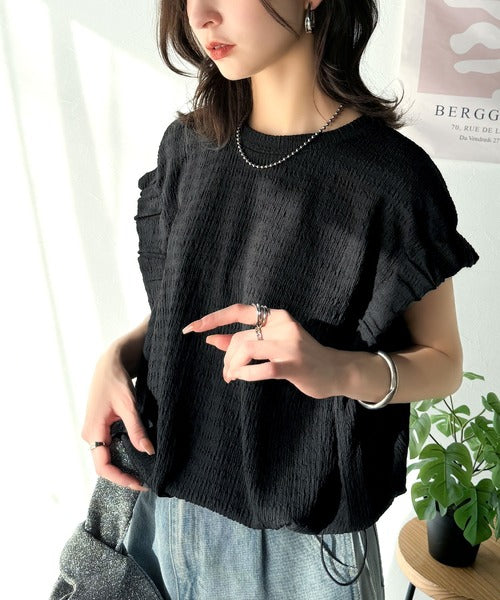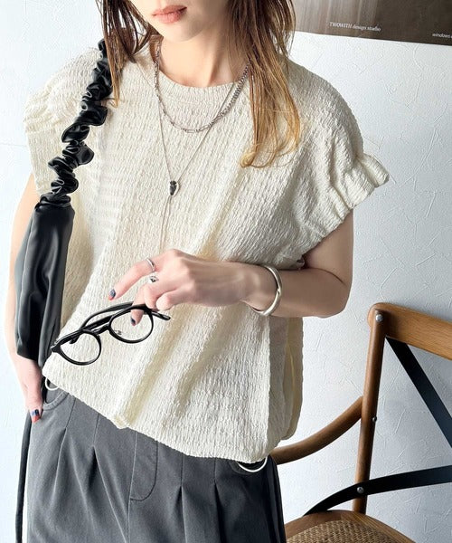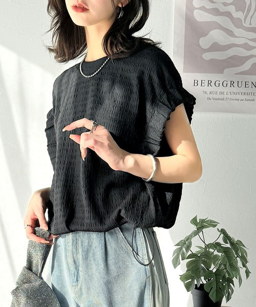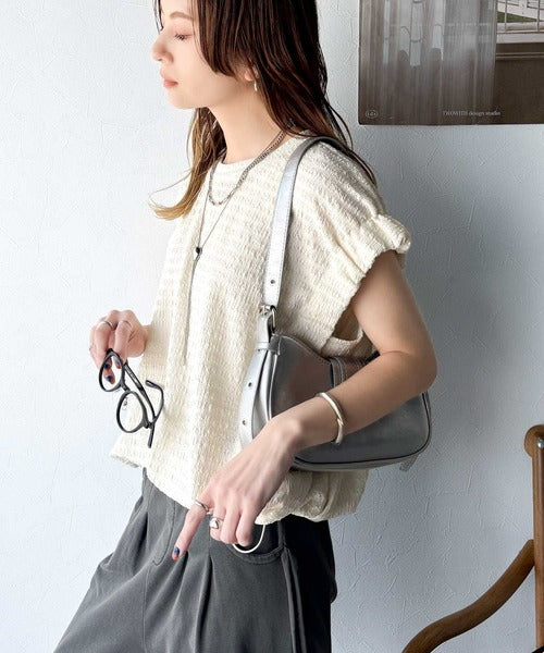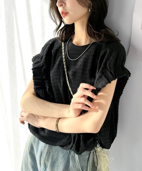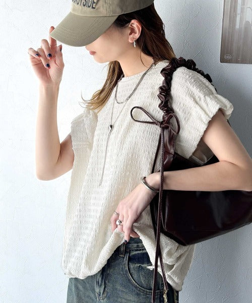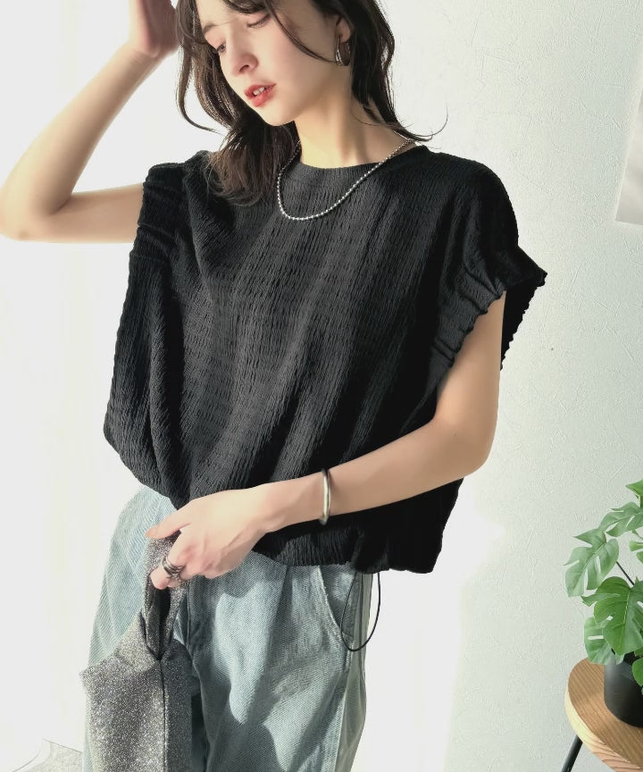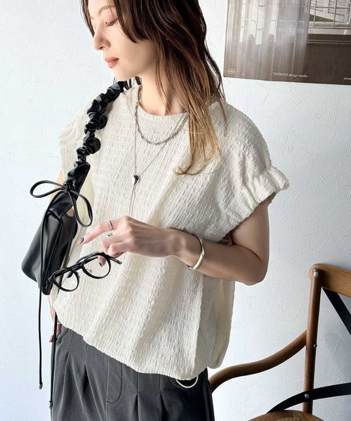 このシャーリング風ジャガードフレンチスリーブは、スタイリングの幅を広げる優れたアイテムです。