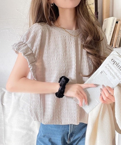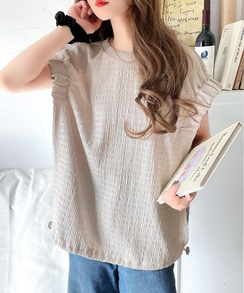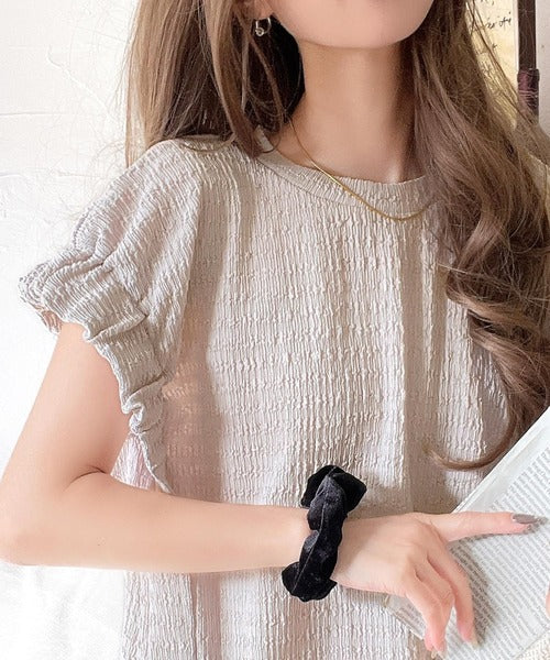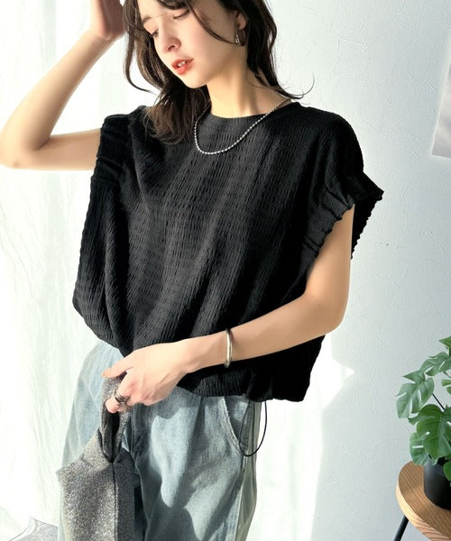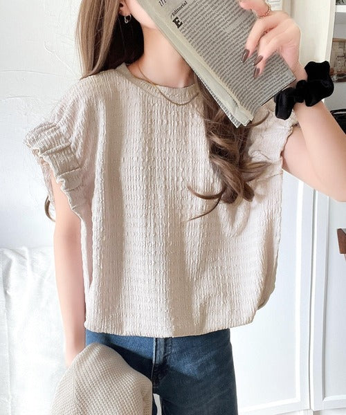 旬のスタイルを手に入れる。袖くしゅくしゅシャーリング風ジャガードトップス ce1010390