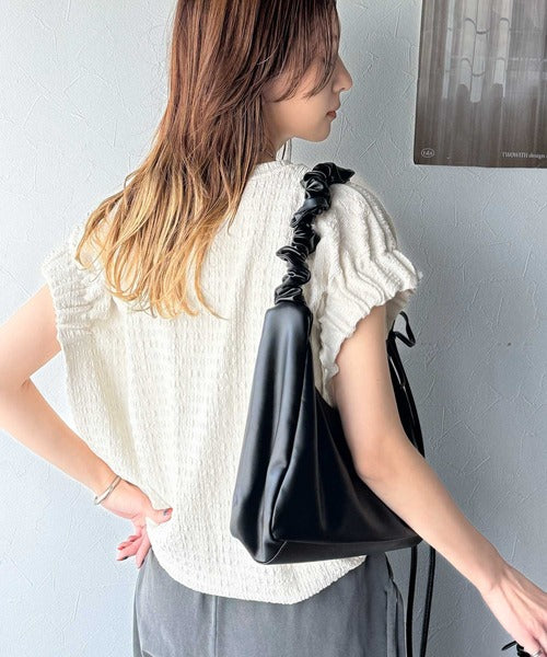 脇部分の立体感とギャザーが、しっかりとしたボリューム感を持ちながらも華奢な印象を与え、