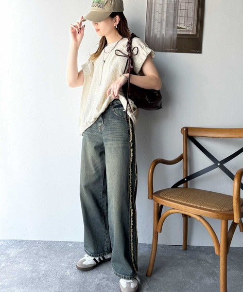 カジュアルコーデを楽しむならカーブデニムやフレアパンツを合わせるのがオススメ!