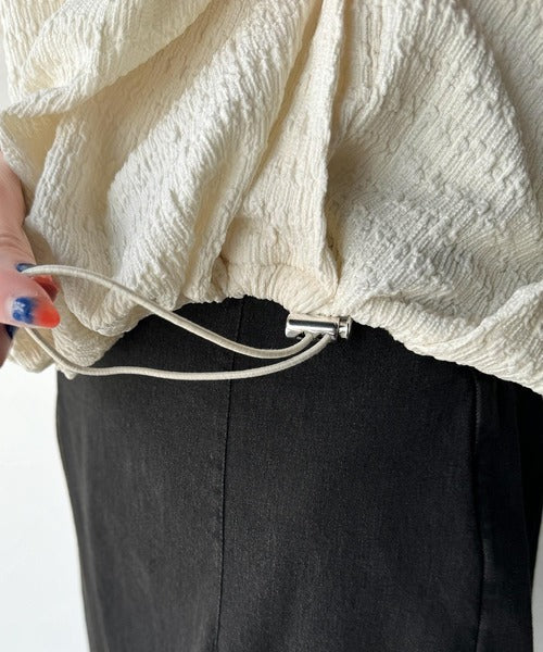 裾のドロストデザインでシルエット変化も楽しめ、女性らしさを引き立てるデザイン。