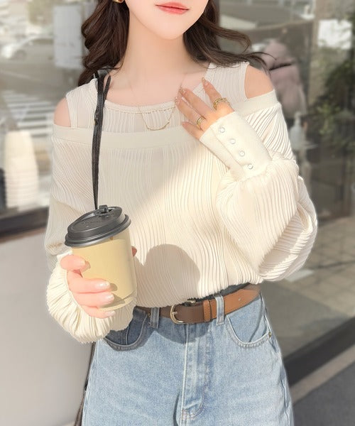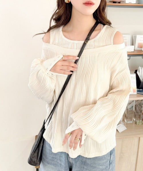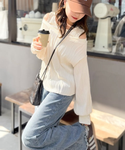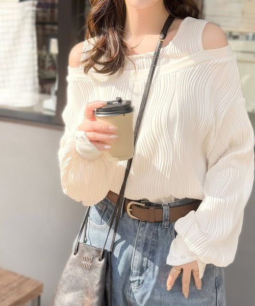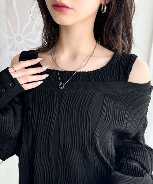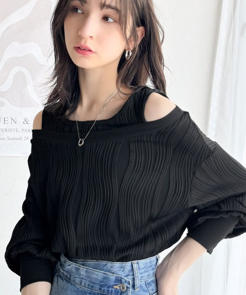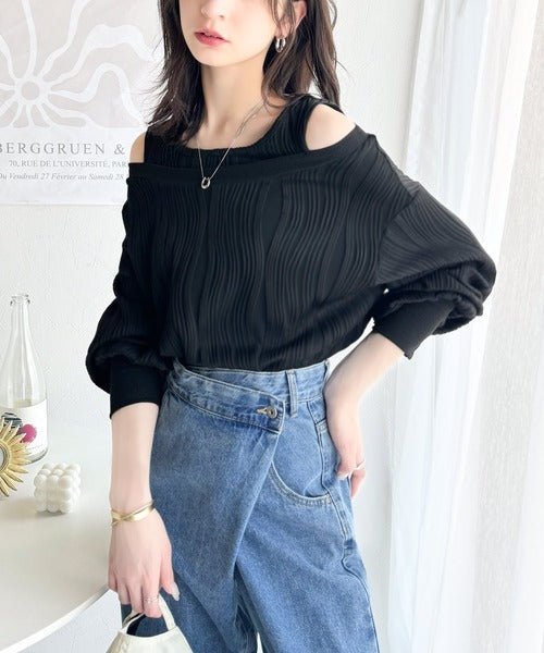 一枚で完成度MAX。フェイクレイヤードオフショルウェーブ柄ジャガードトップス(長袖) ce1010393