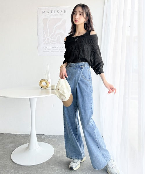 オフショルウェーブ柄トップスは、一枚でコーディネートが決まる優れもの♪