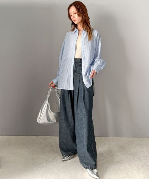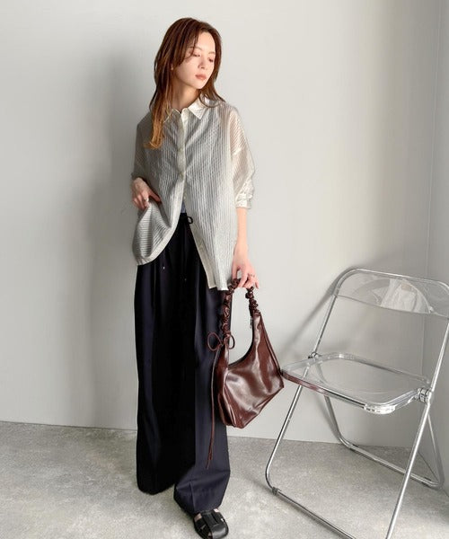 大人の女性にこそ似合うオーバーサイズシアーシャツ。