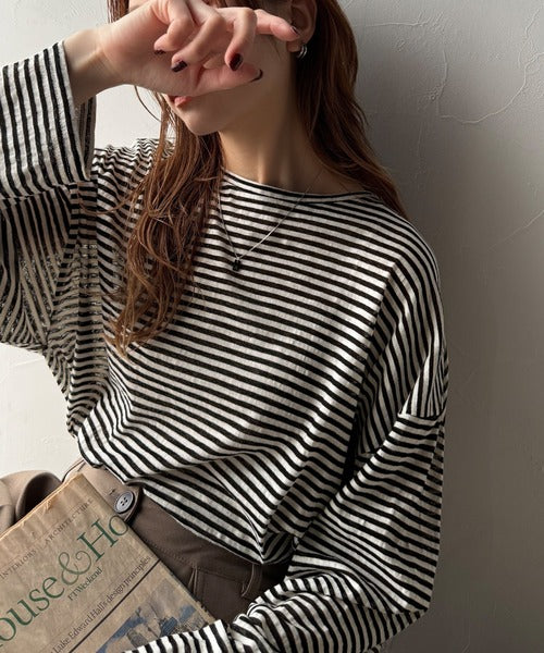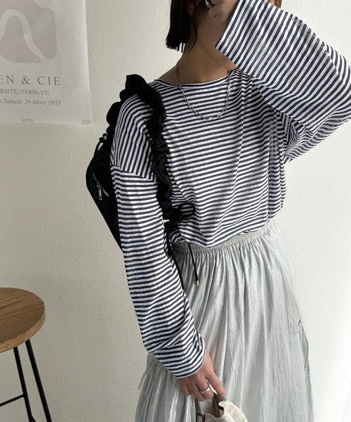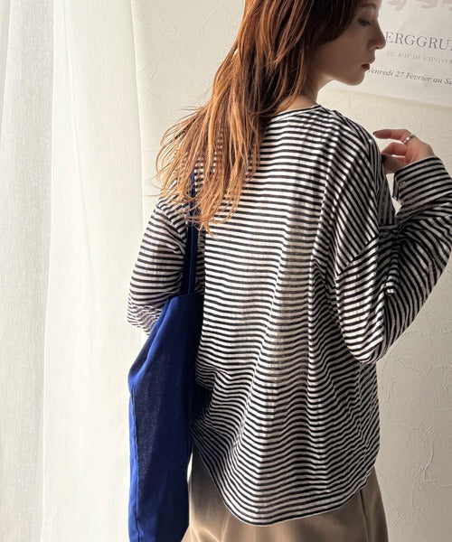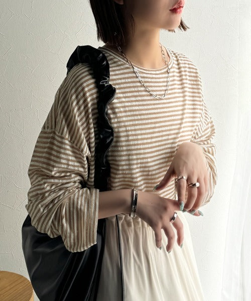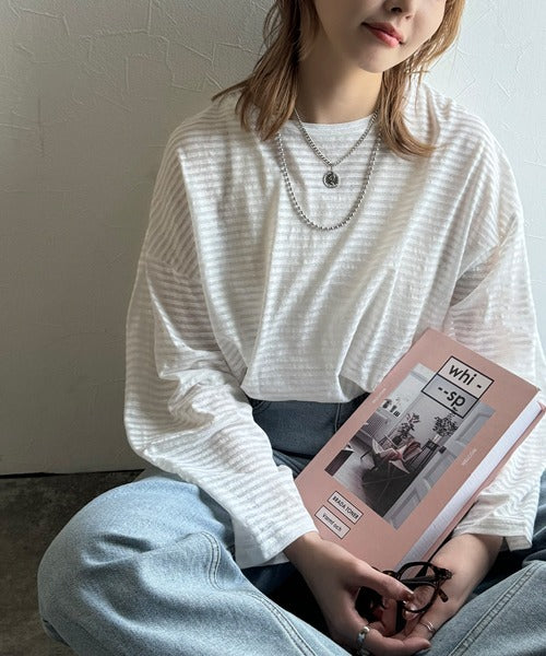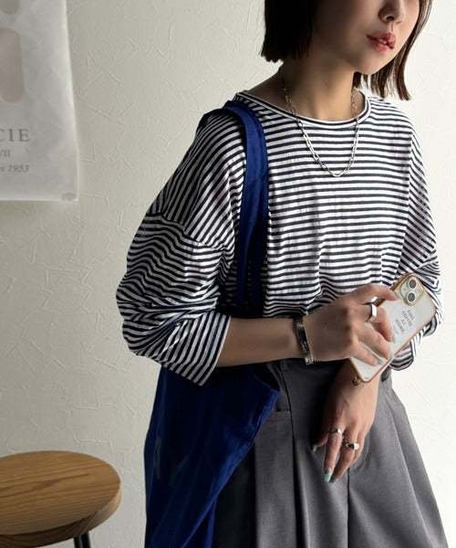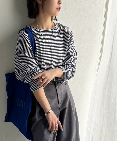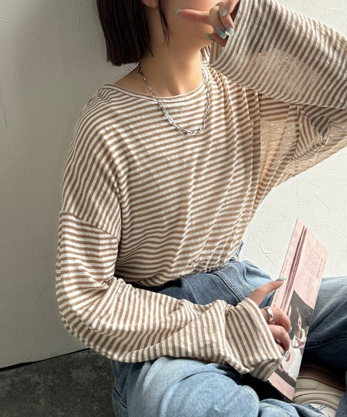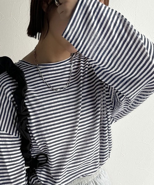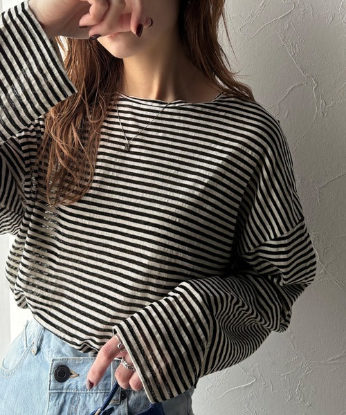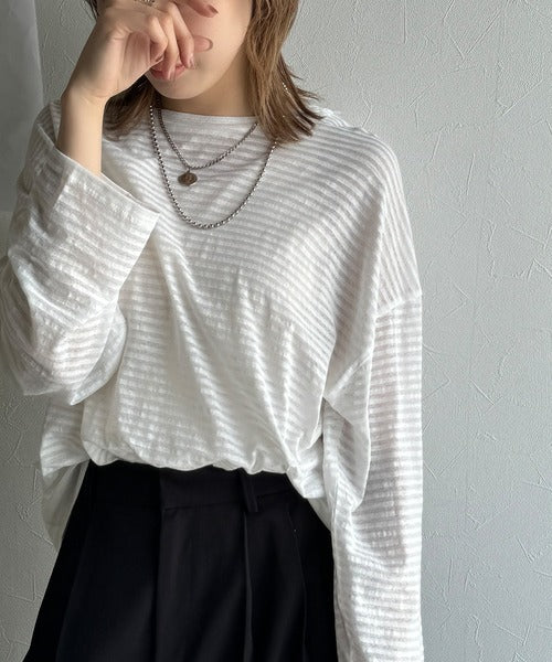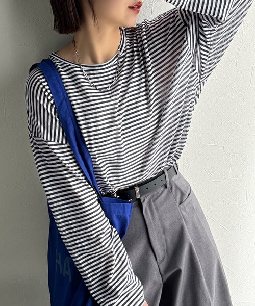 大人のラフスタイルを叶える。ビッグシルエットスラブシアーボーダートップス(長袖) ce1010427