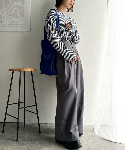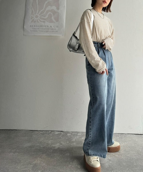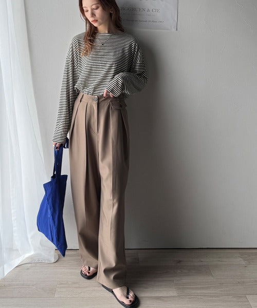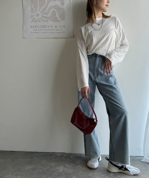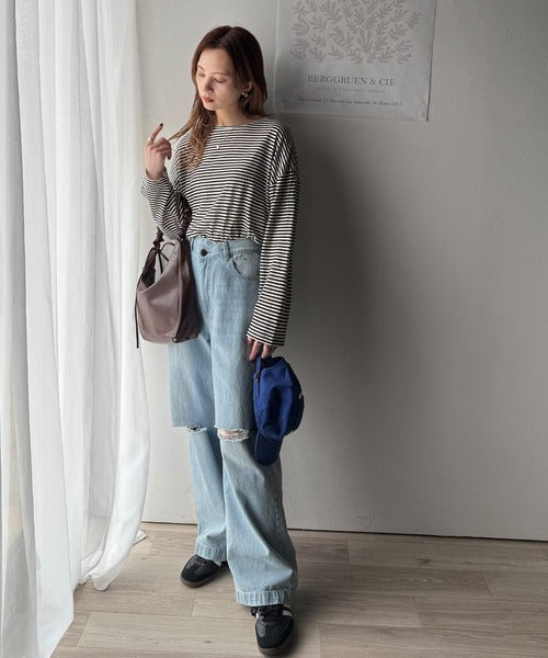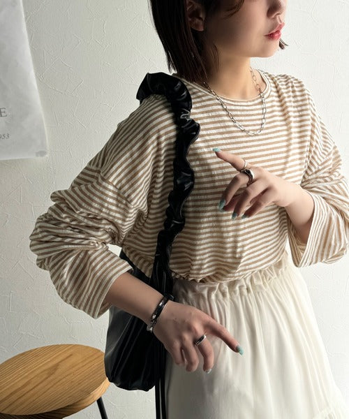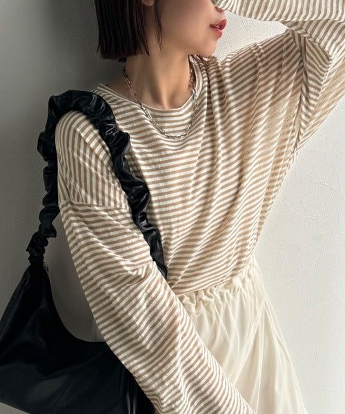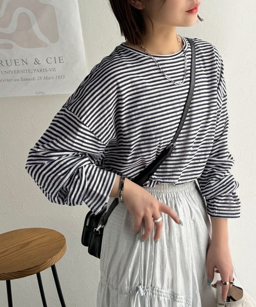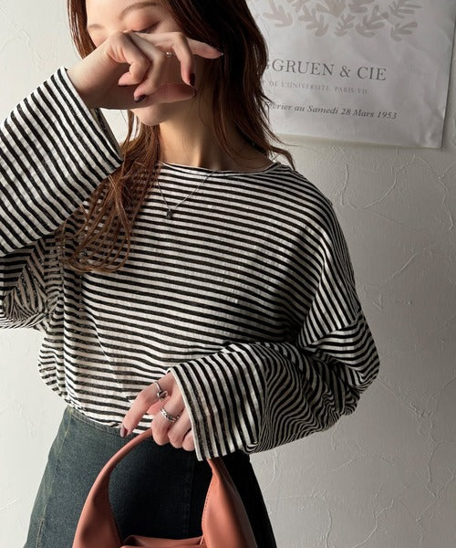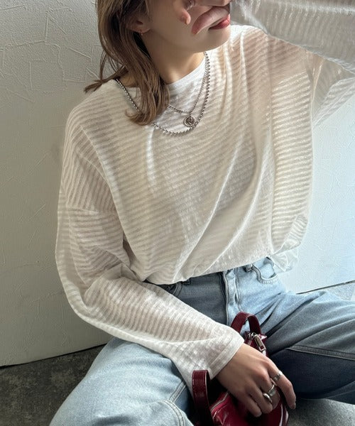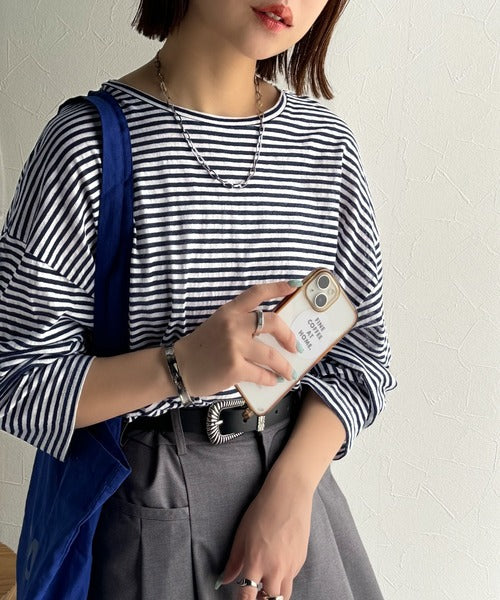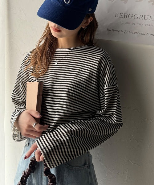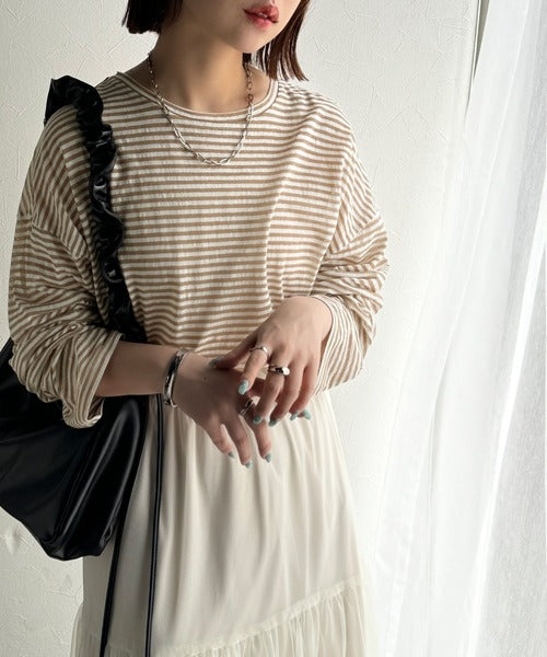 大人のラフスタイルを叶える。ビッグシルエットスラブシアーボーダートップス(長袖) ce1010427