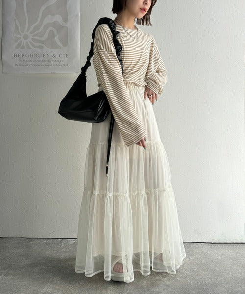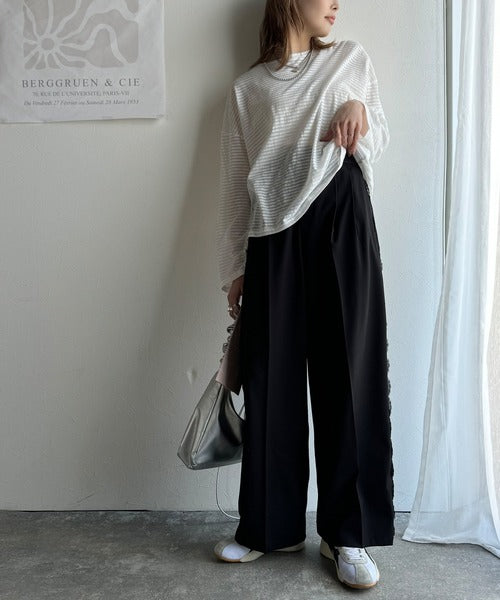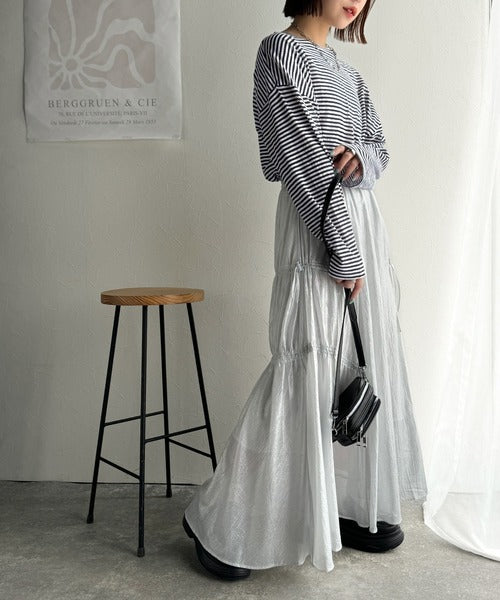 ボーダー部分に透け感のあるシアー素材を使用した、