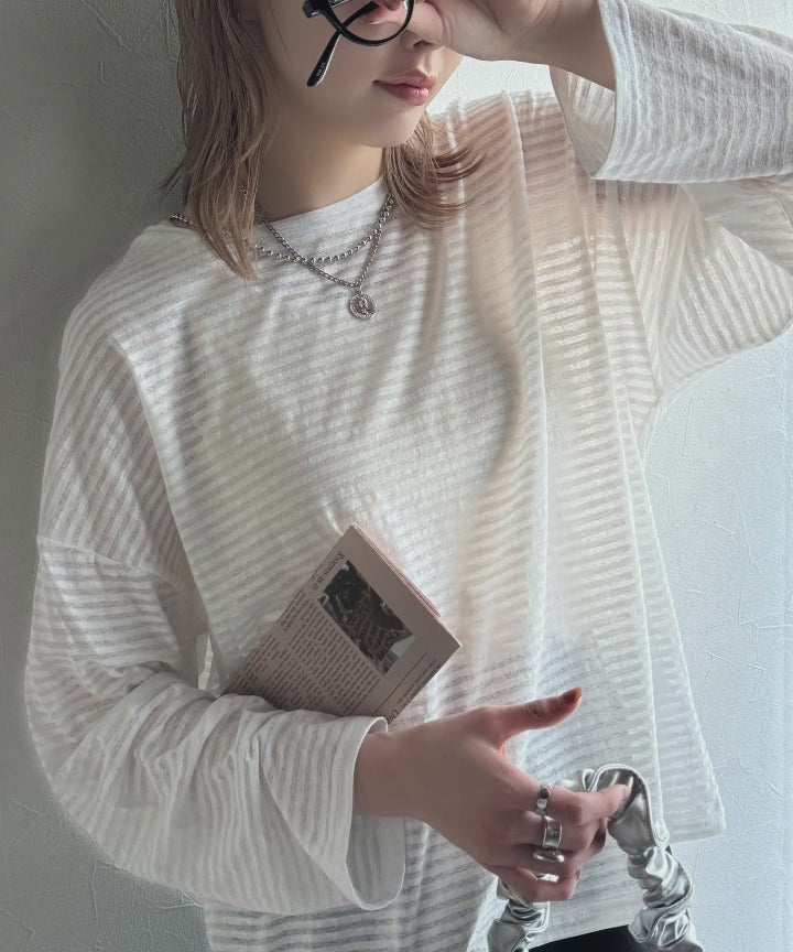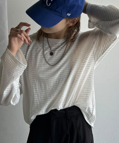 さりげない透け感が涼しげなこちらの「スラブシアーボーダートップス」は