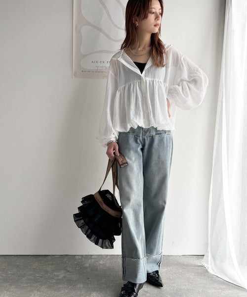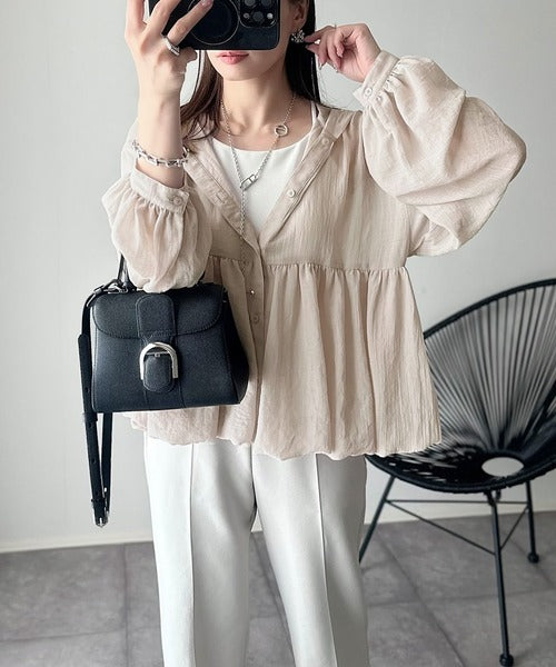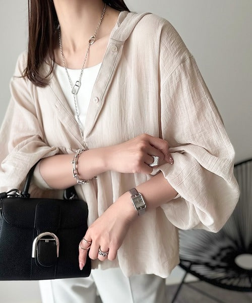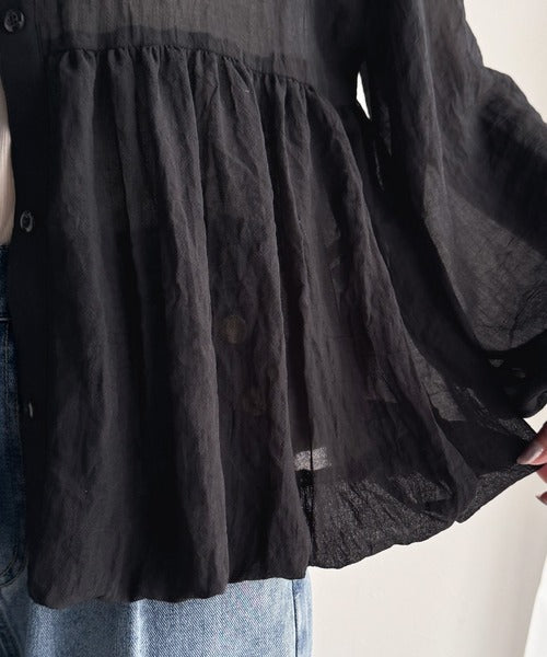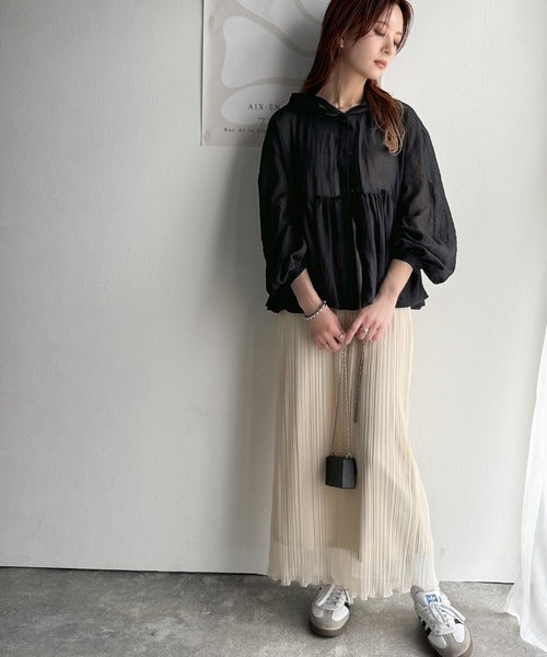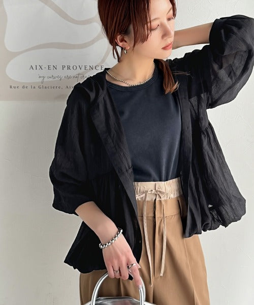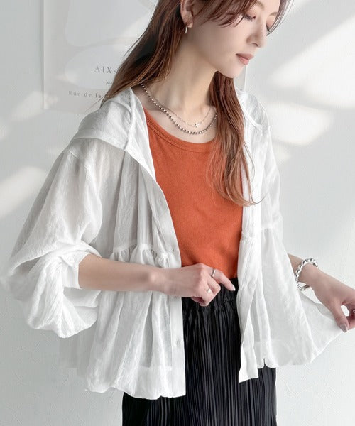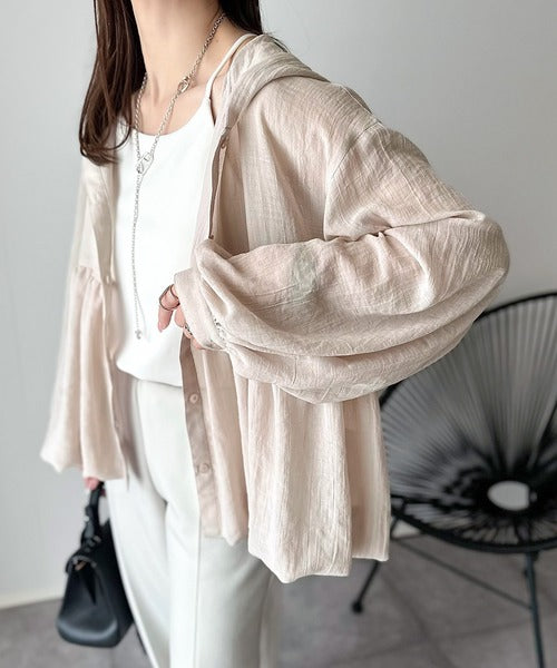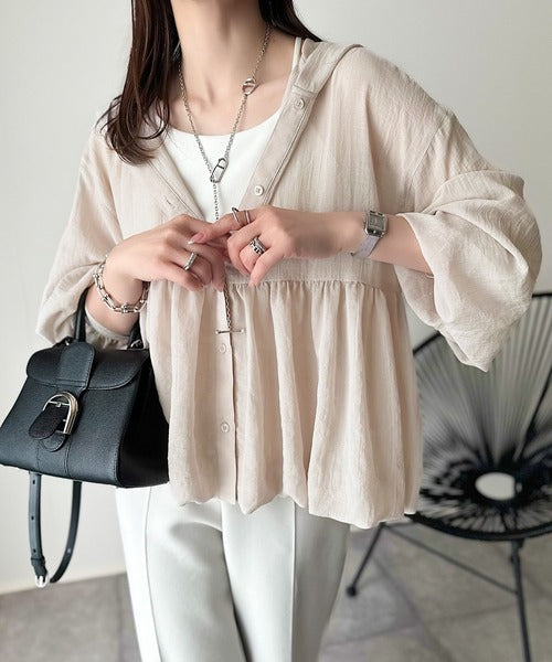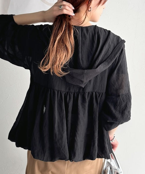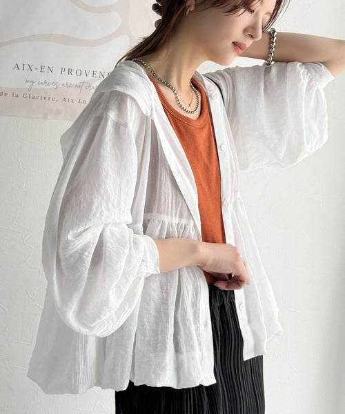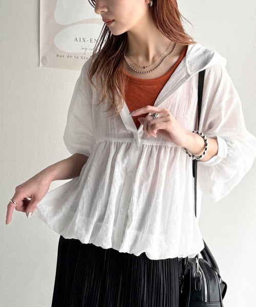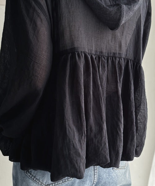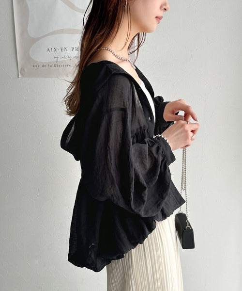 抜け感シアーで軽やかに。フード付きバルーンシルエットの長袖ブラウス ce1010440