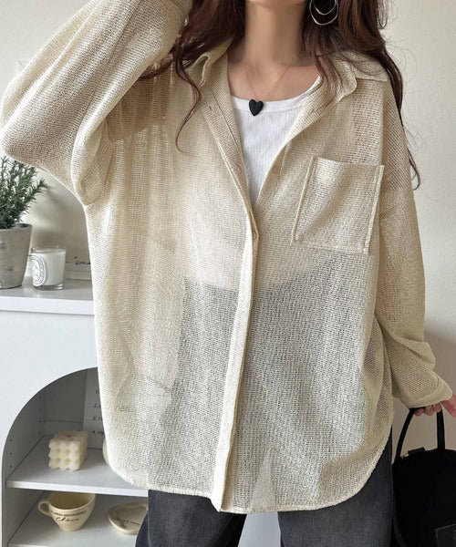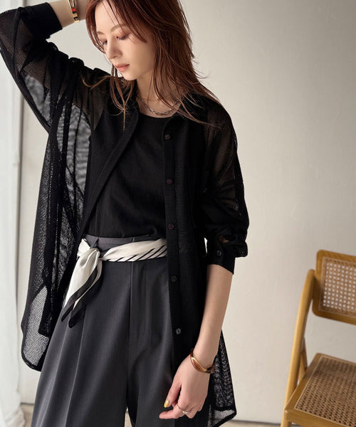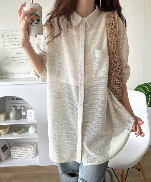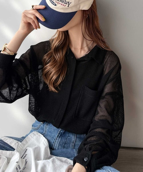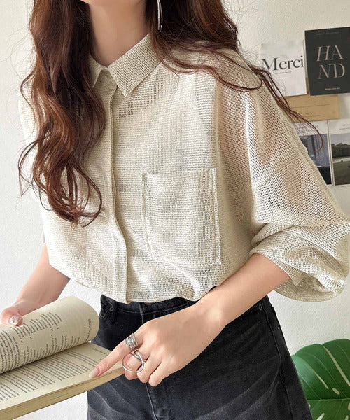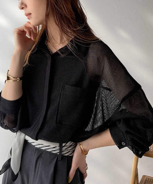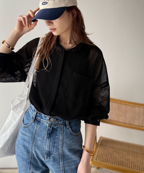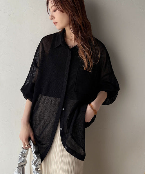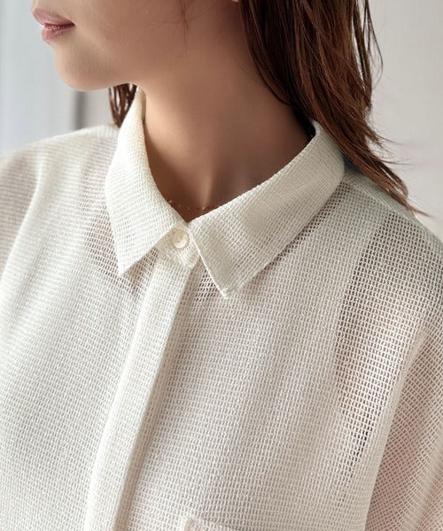 上品カジュアルを楽しめる涼し気メッシュ素材シャツ◎