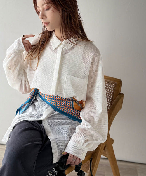 「風が透き通る」。比翼デザイン胸ポケットスラブメッシュシャツ(長袖) ce1010462