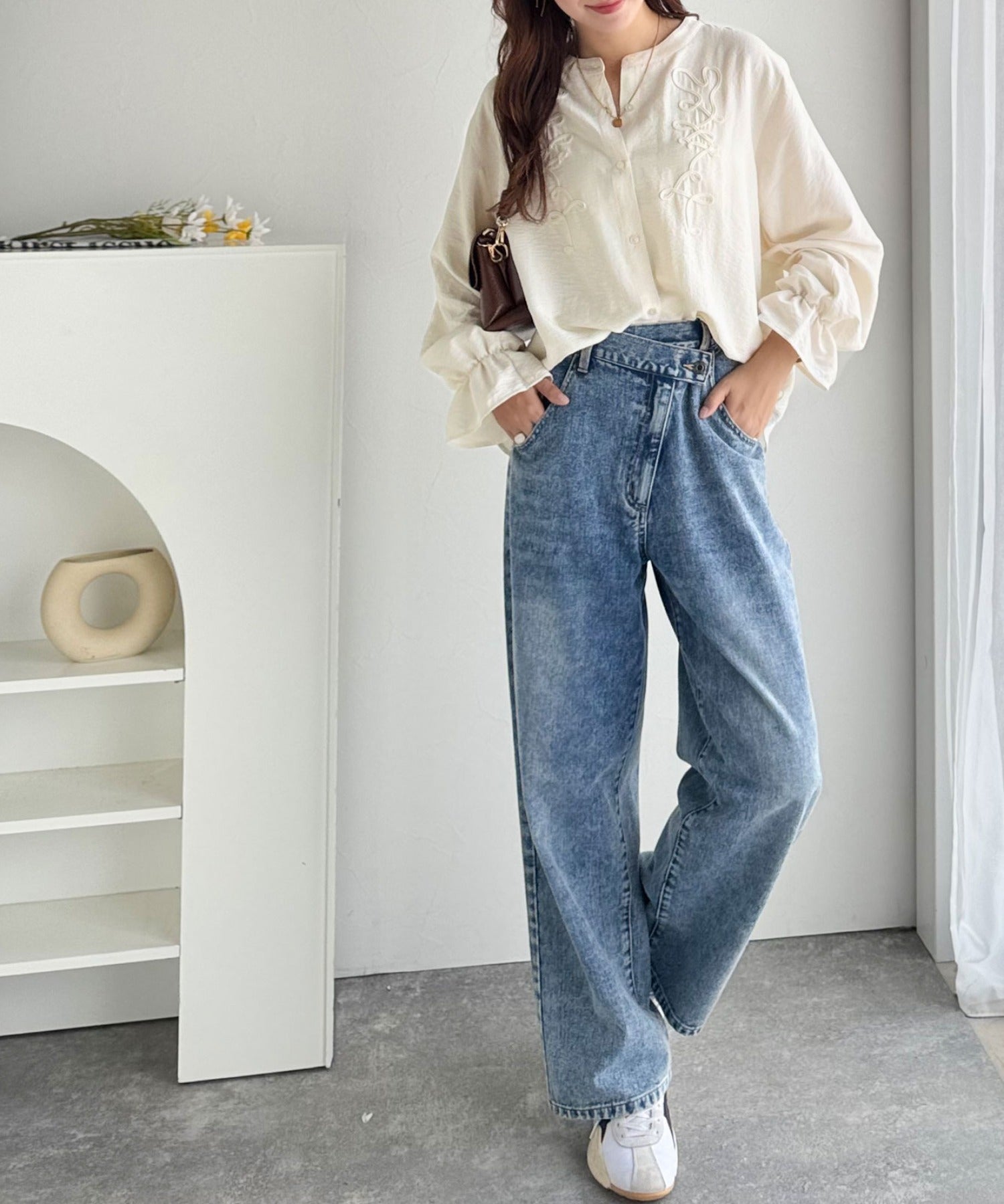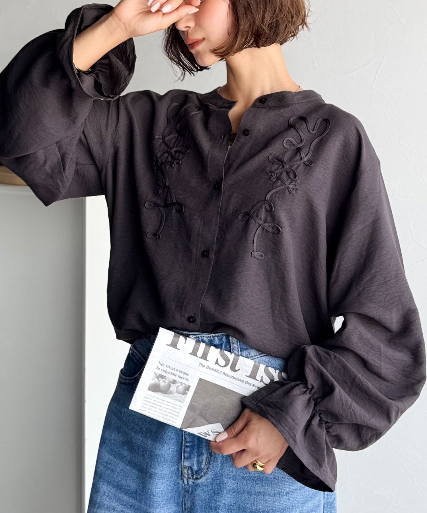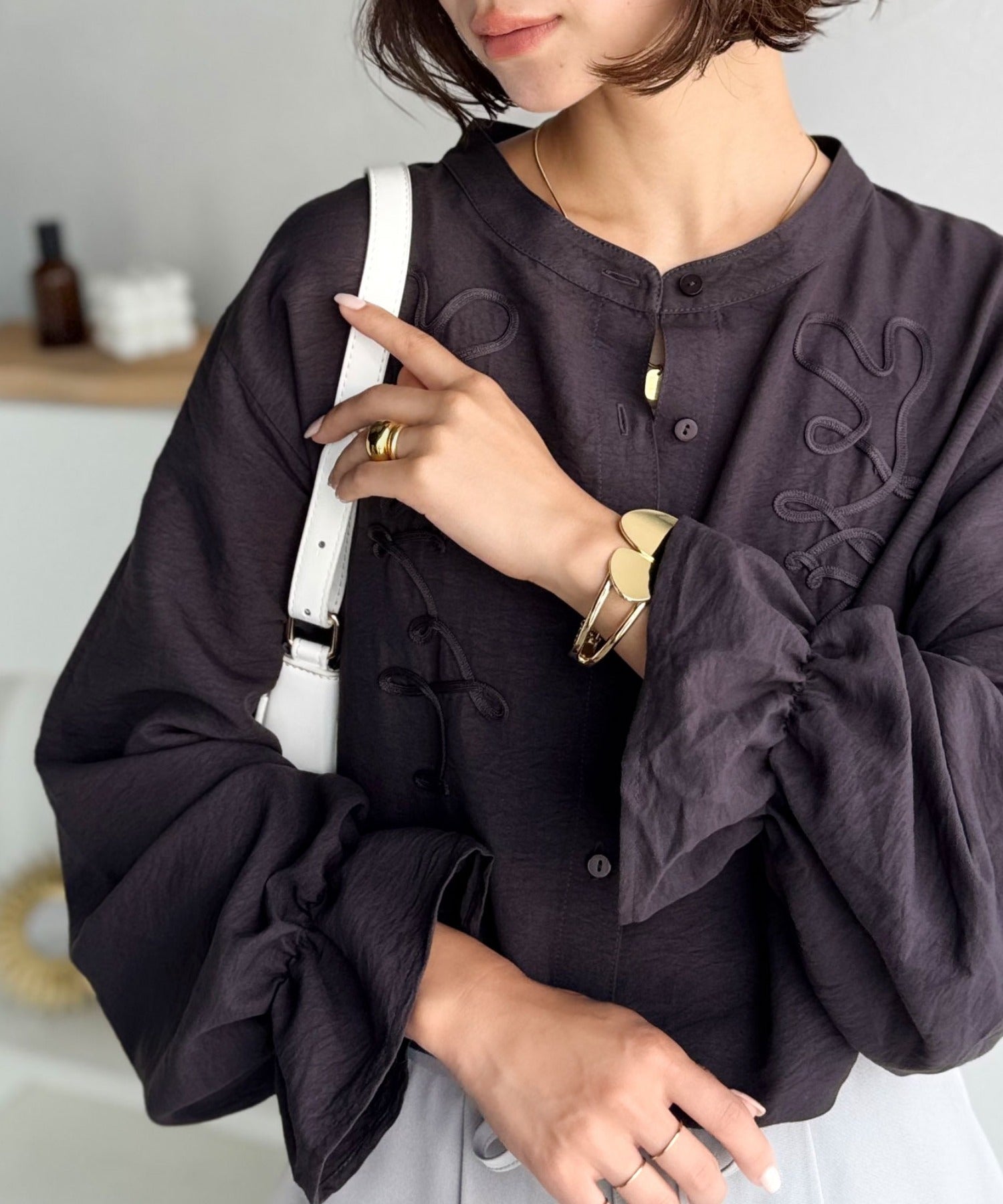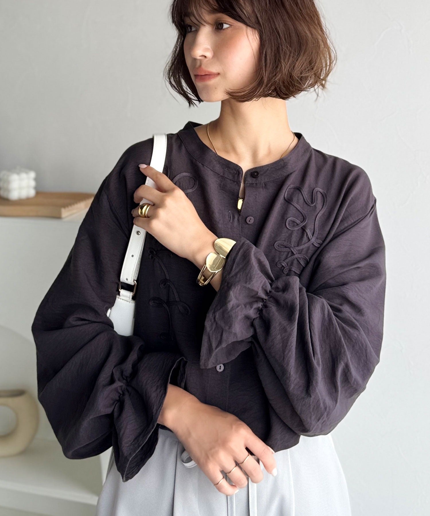 袖コンシャスが上品に映える♪コード刺繍キャンディスリーブシャツ(長袖) ce1010497