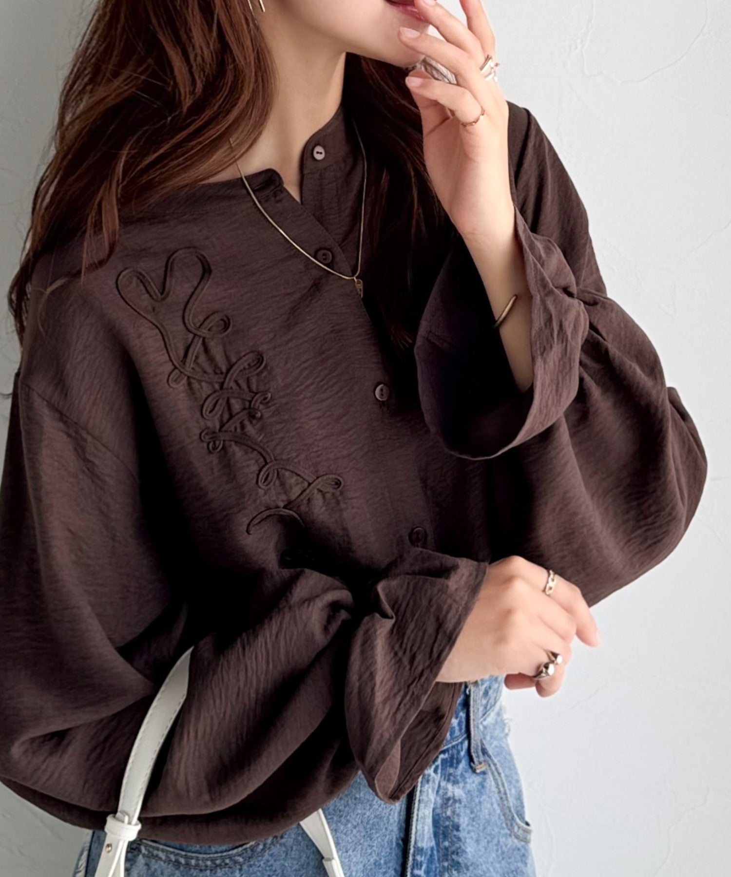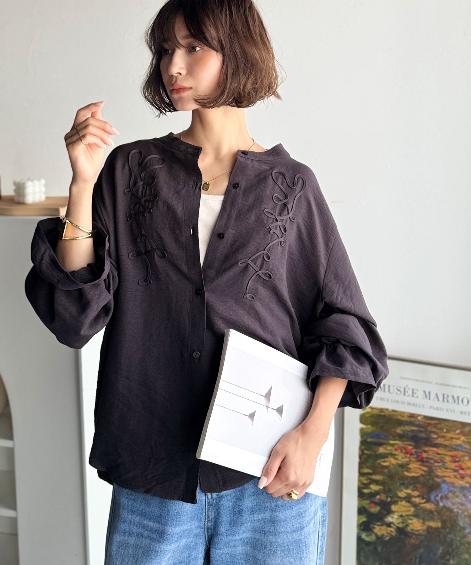 ぽこっと立体感のあるコード刺繍を施した、華やかさと着やすさを兼ねたシャツ♪