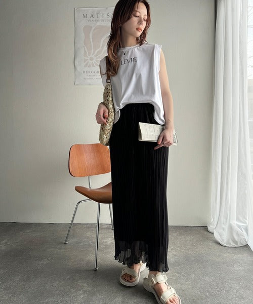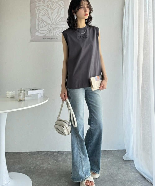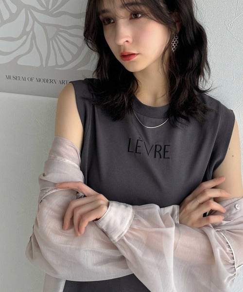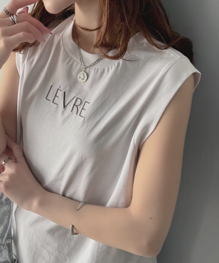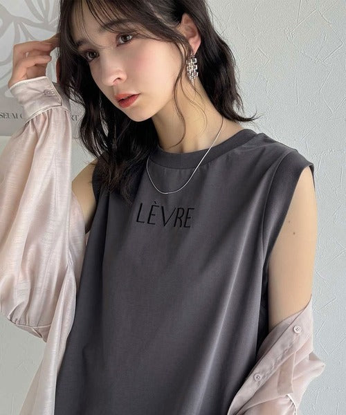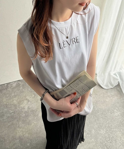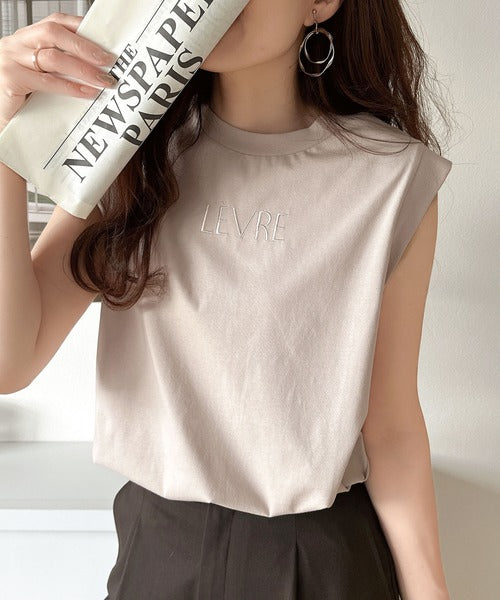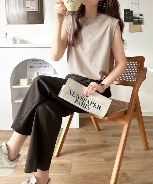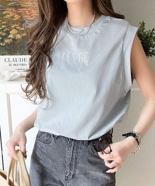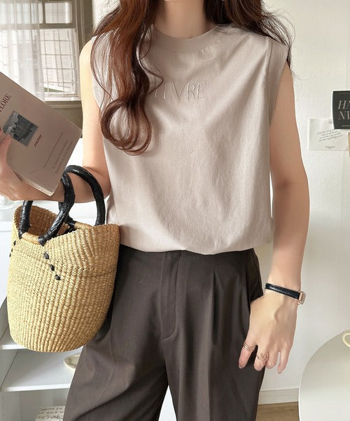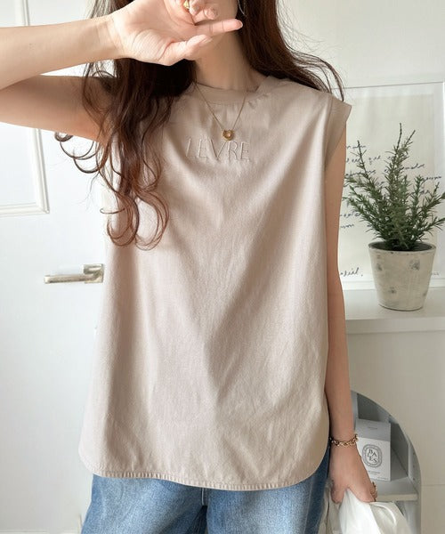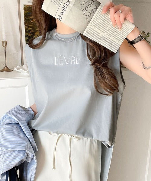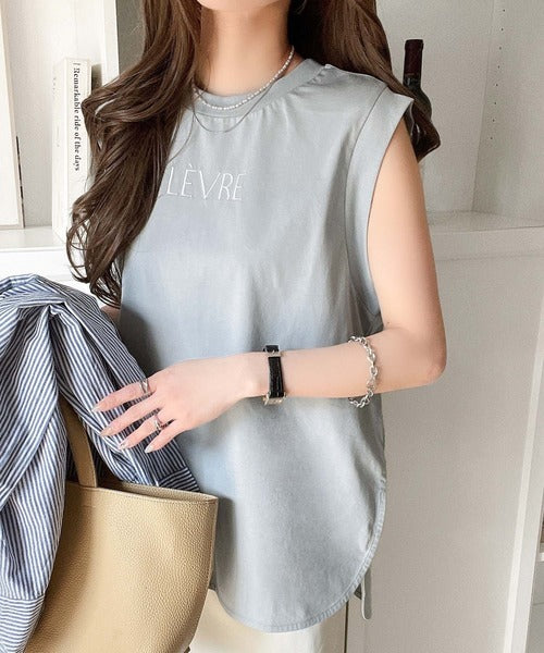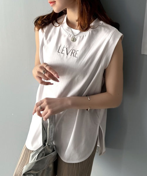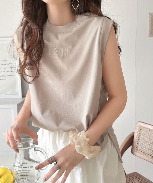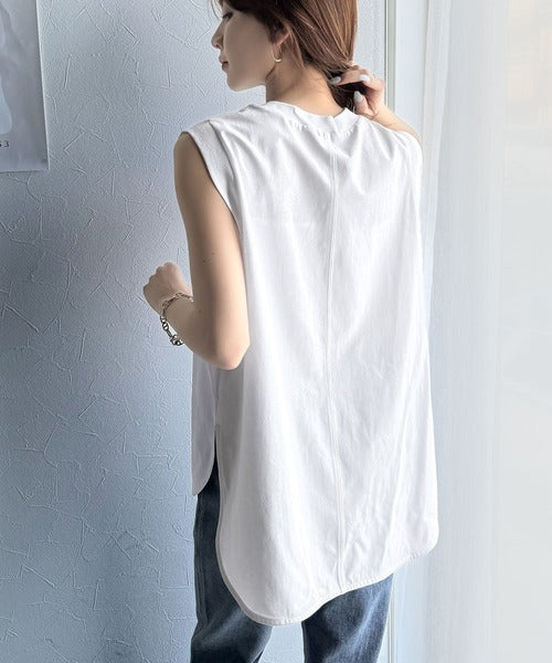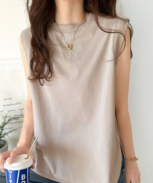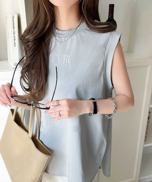 春夏コーデの主役!シルケット胸元刺繍サイド裾スリット入りノースリーブカットソー ce1020199