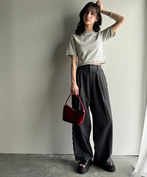 コンパクトな丈感でゆったりとしたワイドパンツや、ロングスカートとも合わせてお使いいただけます。