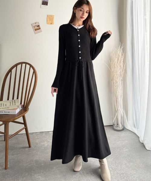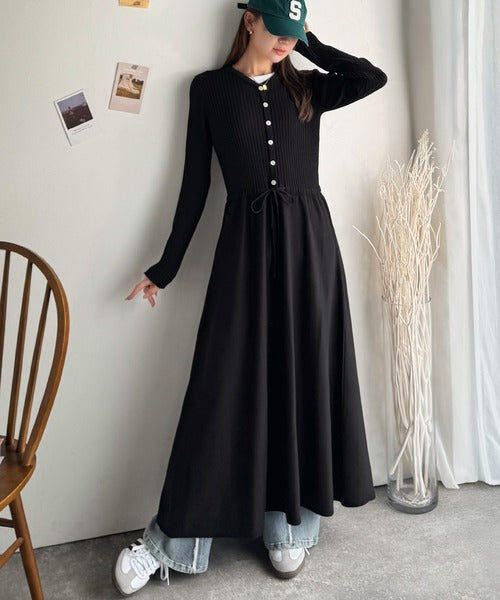 一枚で上品なラク可愛いが完成!ウエストリボンニットワンピース(ロング丈) ce1020288