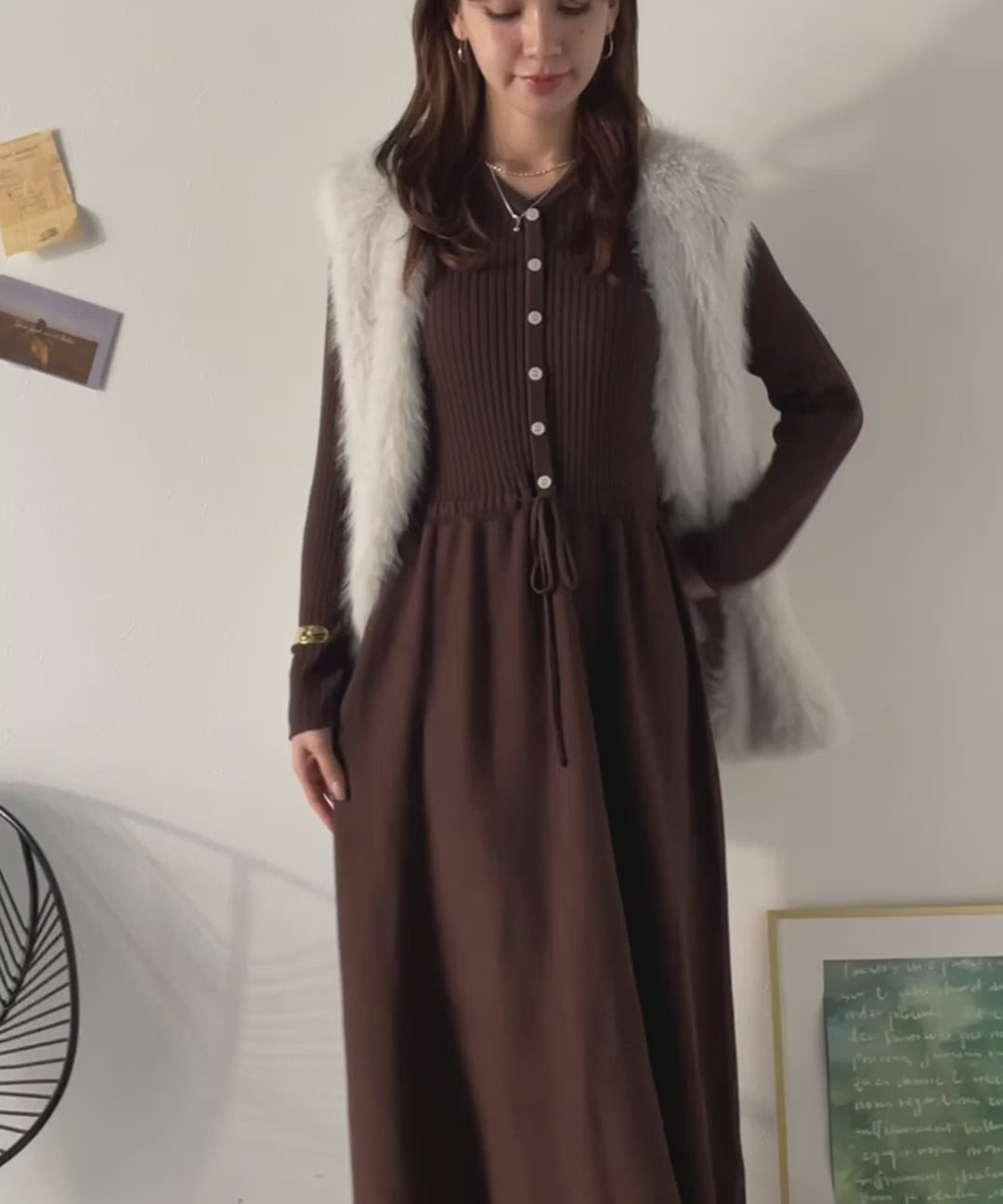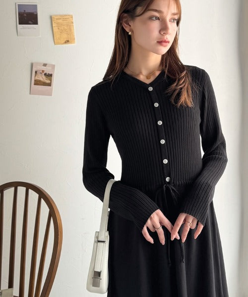 大人可愛いを叶える、ウエストリボンニットワンピース。